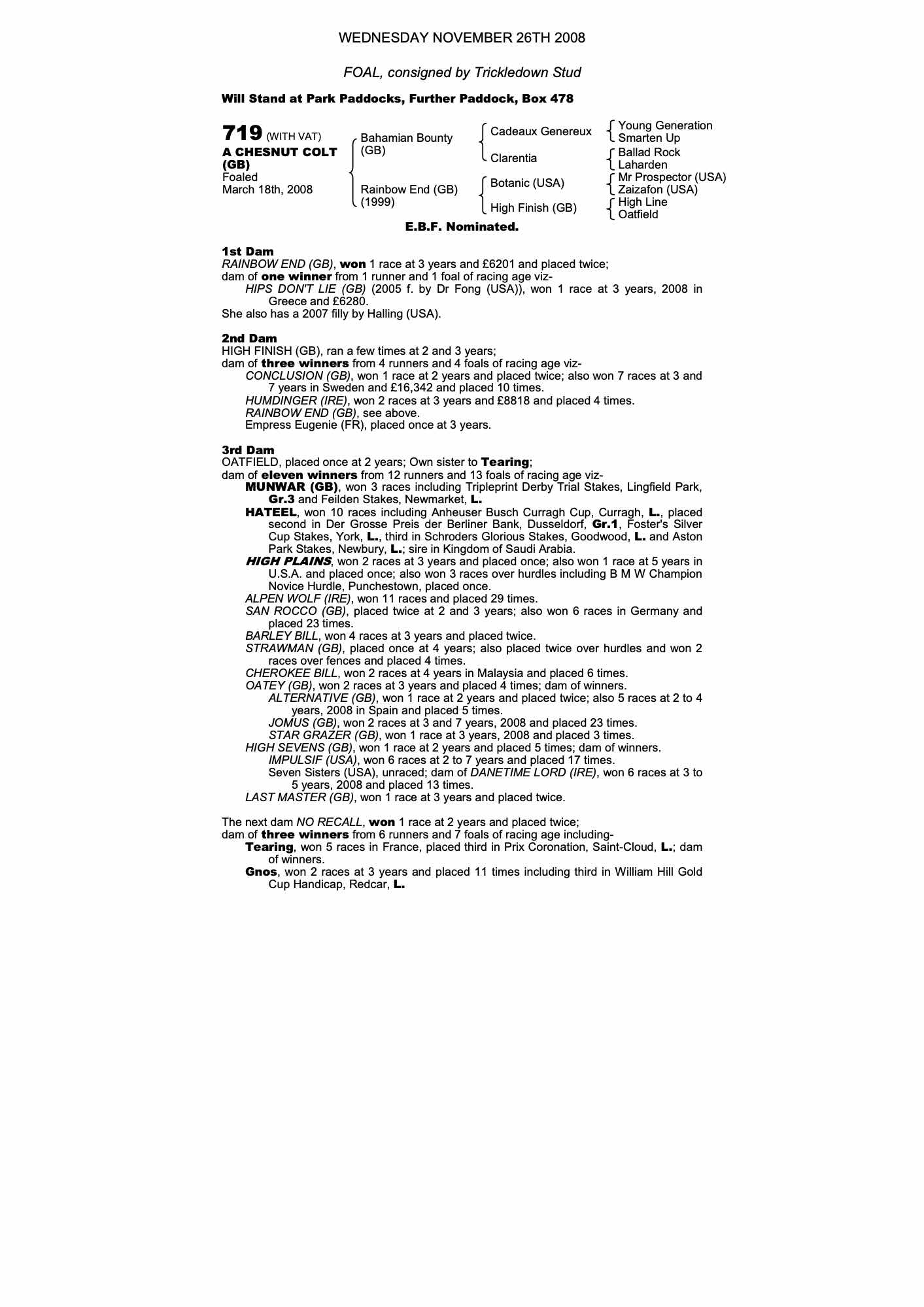 December Foal Sale 2007 lot 834 F. by Halling (USA) 2007, Chapel Farm=>Vendor 10,000 gns