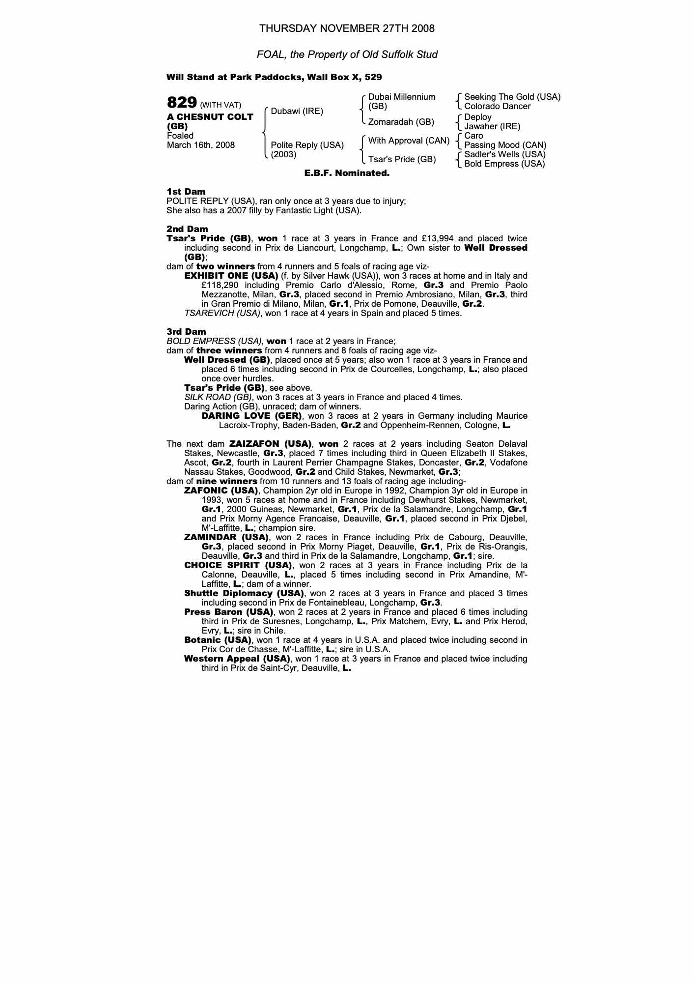 October Yearling Sale, Book 2 2008 lot 780 F. by Fantastic Light (USA) 2007, Old Suffolk Stud=>BBA Germany 3,000 gns