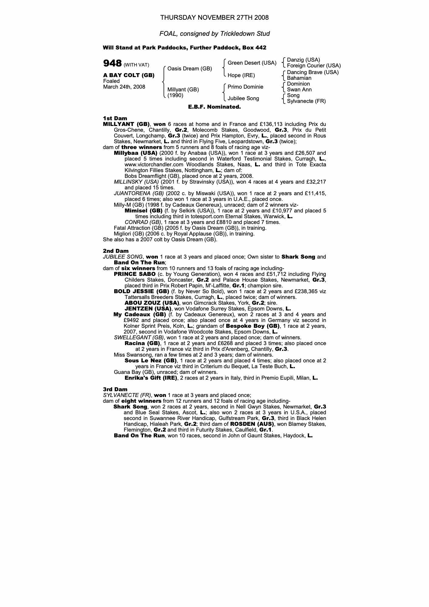 October Yearling Sale, Book 2 2008 lot 689 C. 2007, Trickledown Stud=>Vendor 40,000 gns