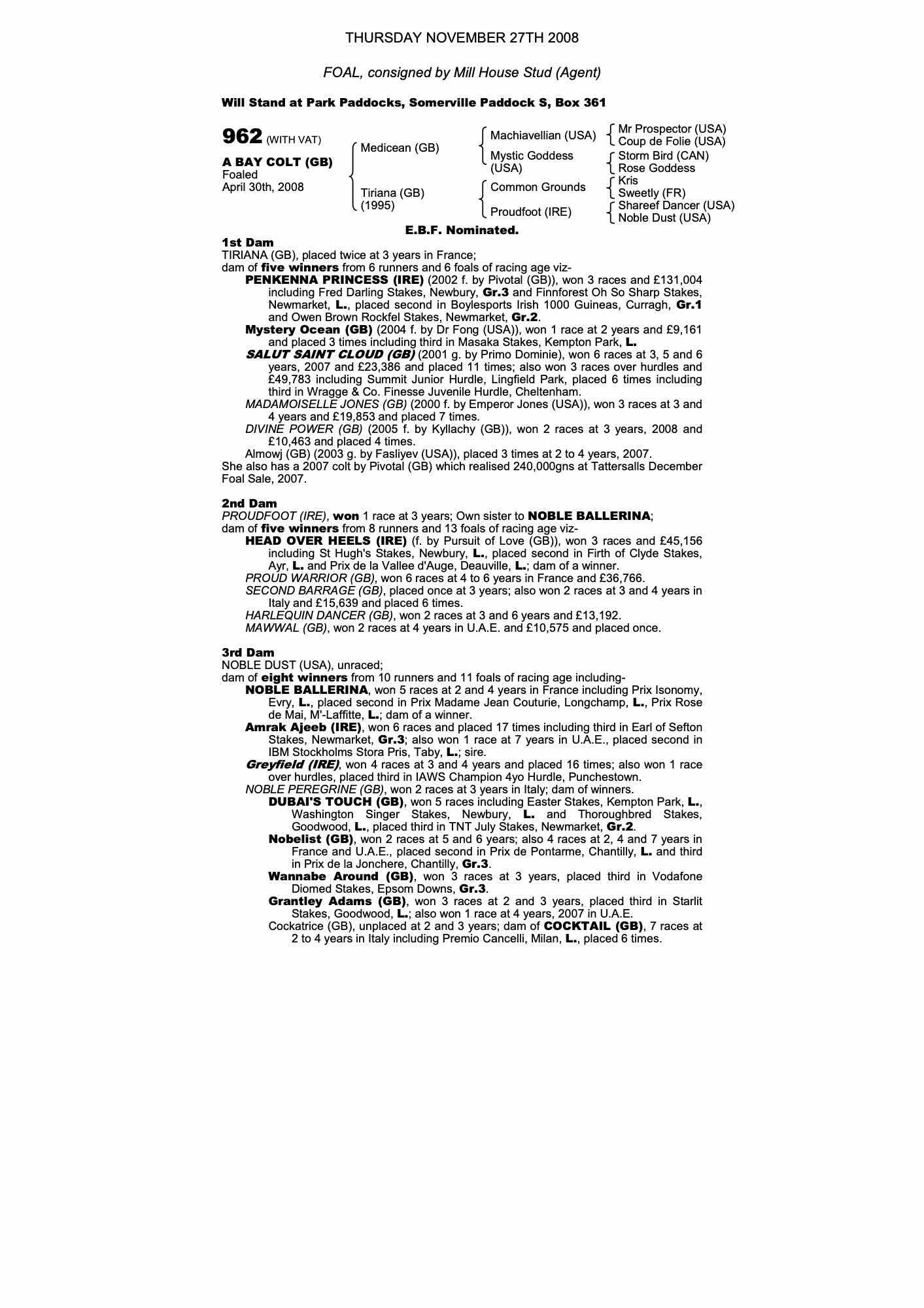 Consignor: Mill House Stud (Agent)