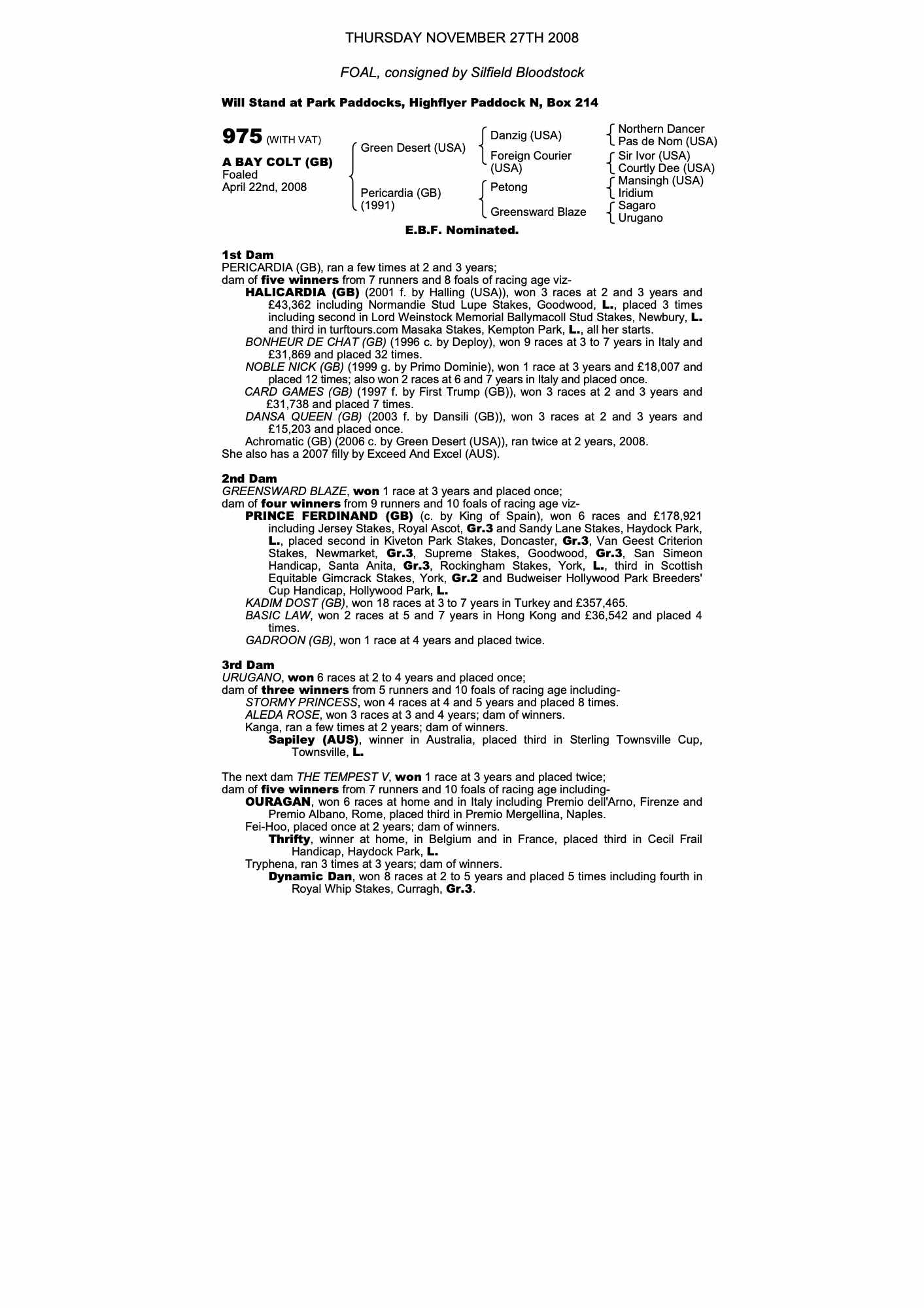 December Yearling Sale 2009 lot 160 C. 2008, Whitehall Stud, Ireland=>Vendor 4,500 gns