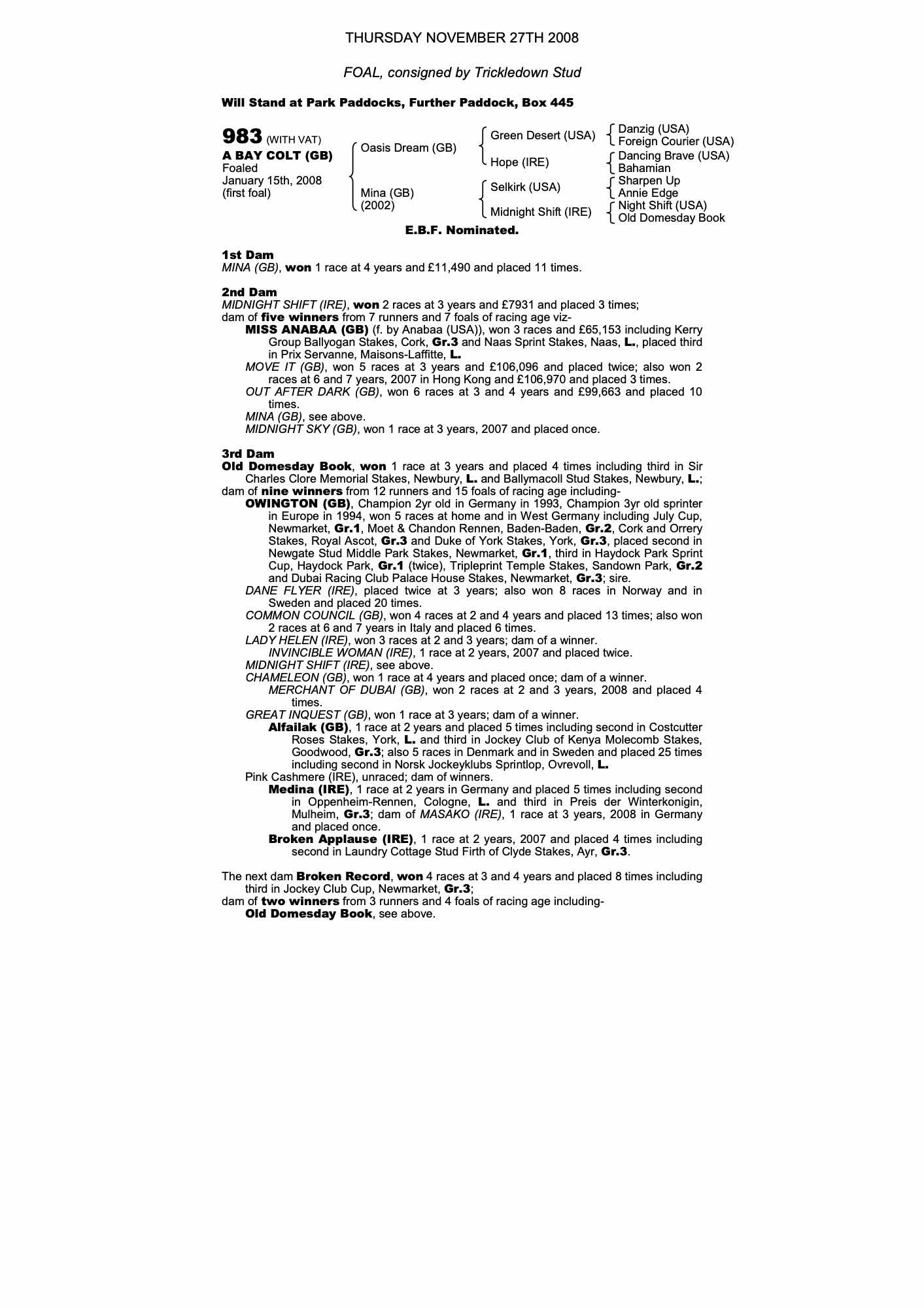 October Yearling Sale, Book 1 2009 lot 578 C. 2008, Yeomanstown Stud, Ireland=>R O'Gorman Bloodstock 150,000 gns