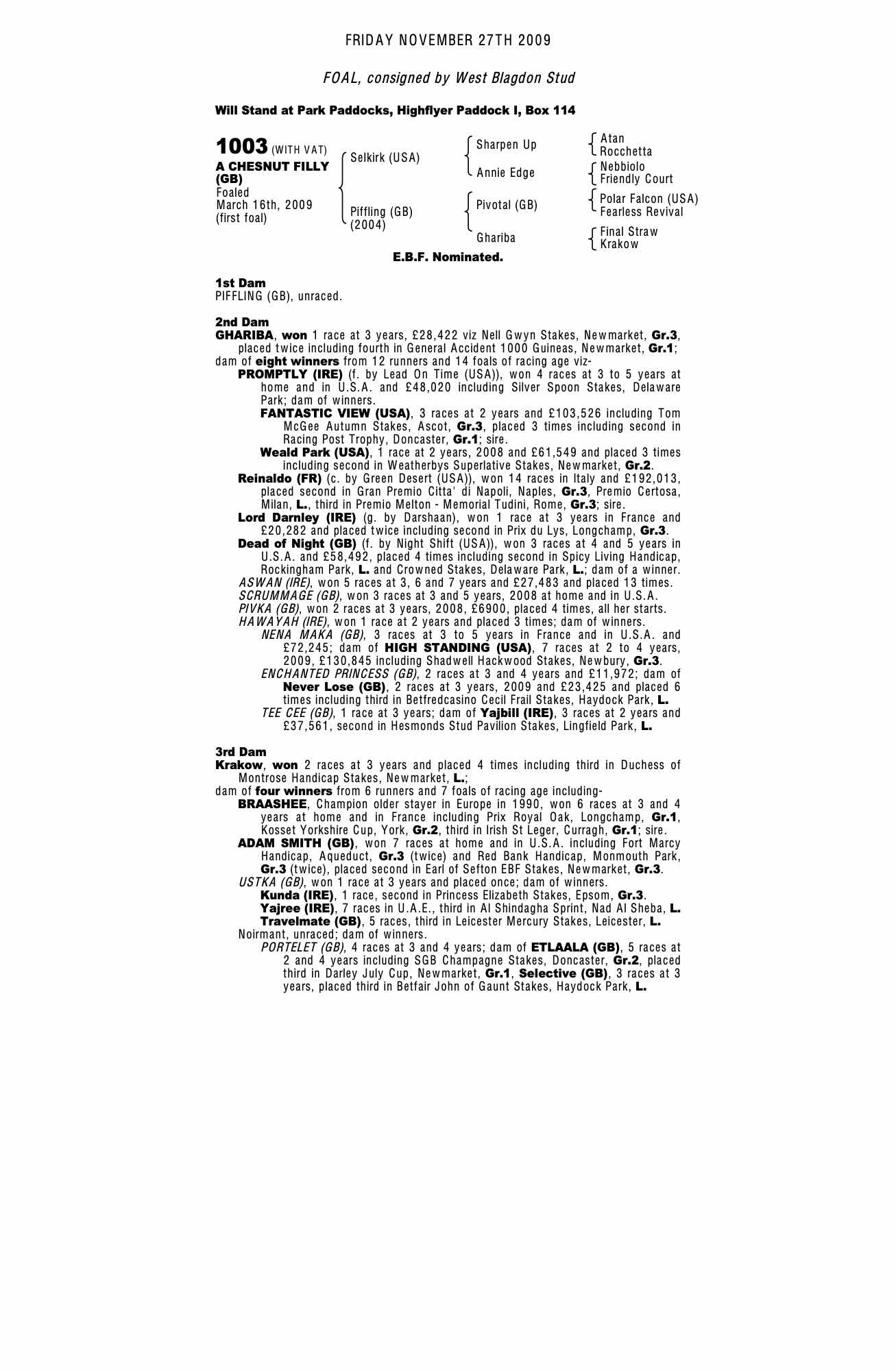 December Foal Sale 2010 lot 1020 F. by Halling (USA) 2010, West Blagdon Stud=>Vendor 15,000 gns