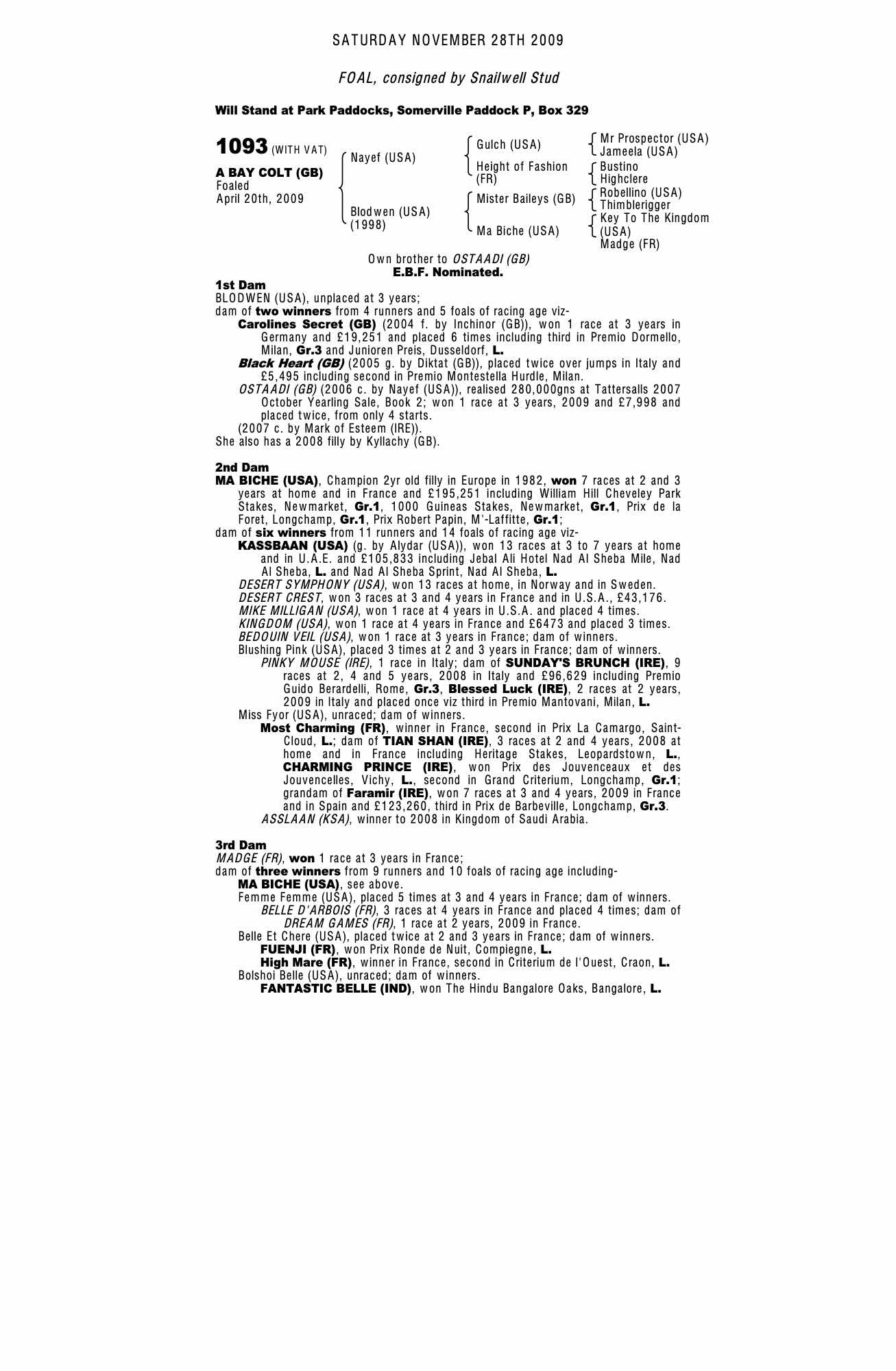 Consignor: Snailwell Stud