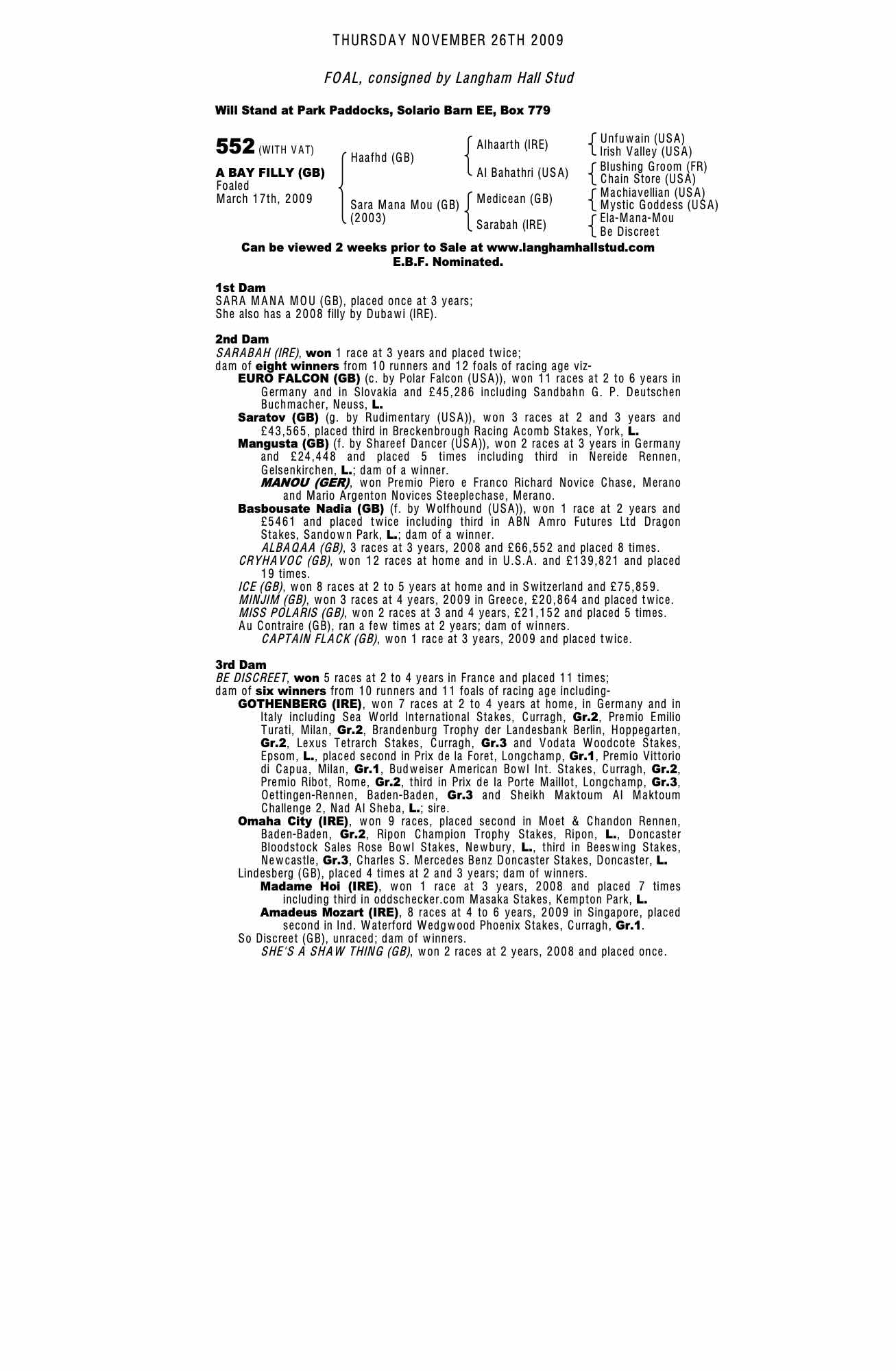 Consignor: Langham Hall Stud