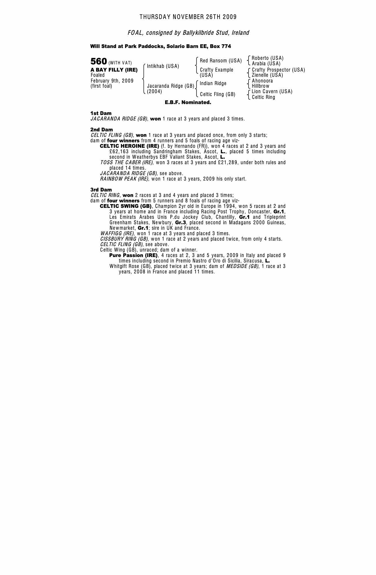 Consignor: Ballykilbride Stud, Ireland