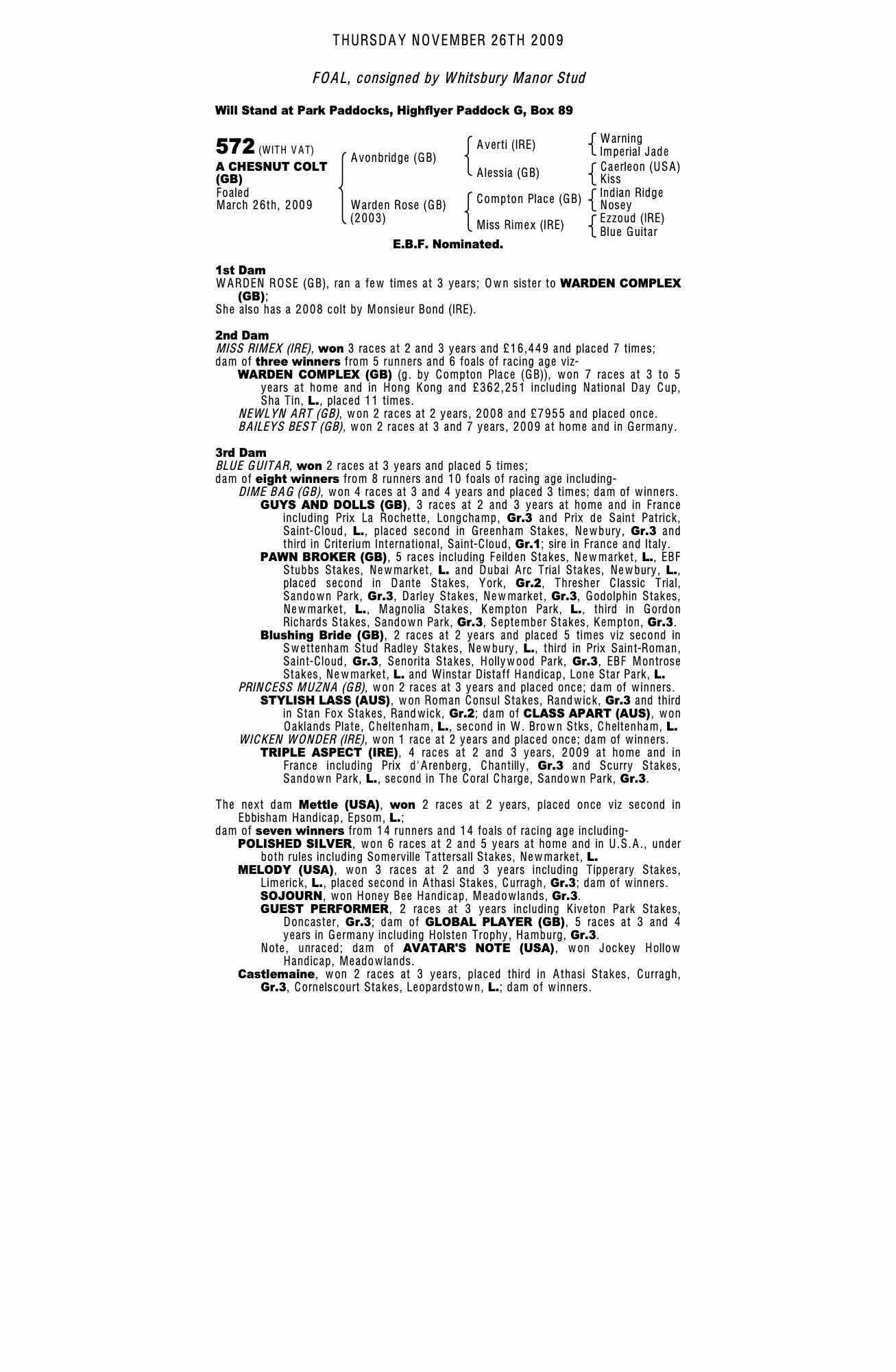 Consignor: Whitsbury Manor Stud