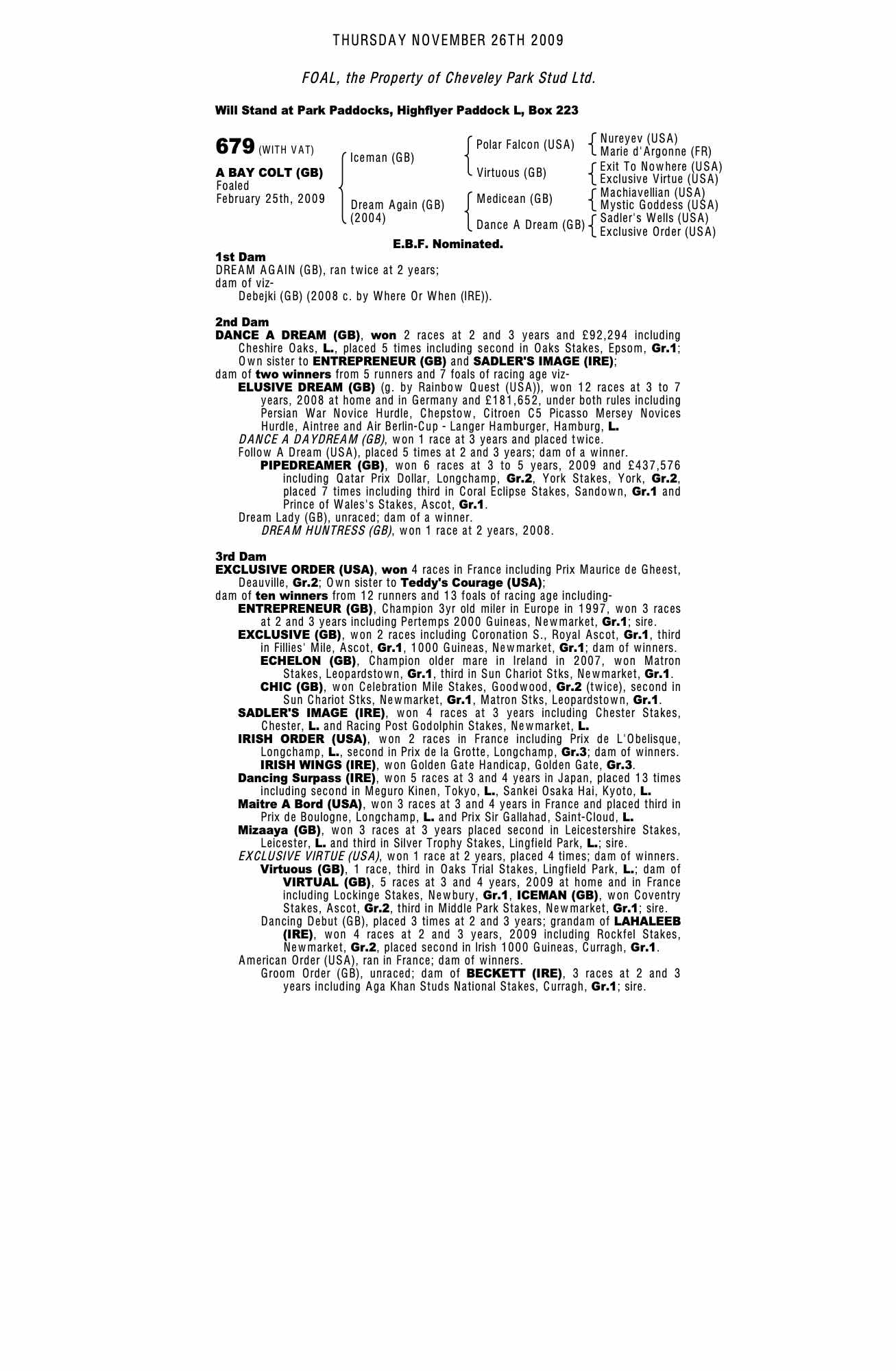 December Mare Sale 2013 lot 2285 Dream Melody (GB) (F. by Selkirk (USA)), Cheveley Park Stud Ltd.=>Isadora Karsson Gomez 4,500 gns
