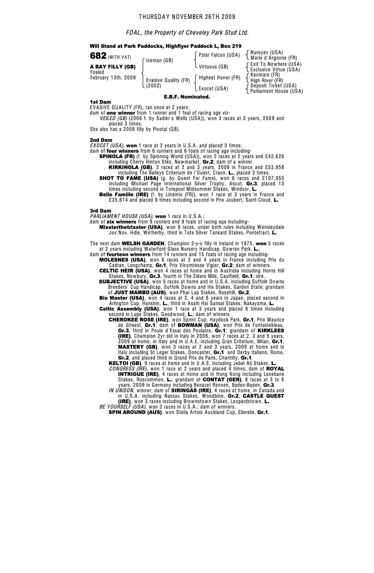 Autumn Horses in Training Sale 2009 lot 744 Veiled (GB) (F. by Sadler's Wells (USA)), Heath House Stables (Sir Mark Prescott, Bt.)=>J Pearce 48,000 gns