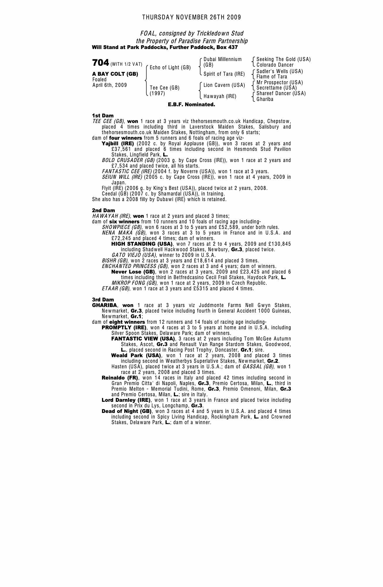 December Foal Sale 2004 lot 1266 F. by Noverre (USA) 2004, Trickledown and Paradise Farm Studs=>GThornton 40,000 gns