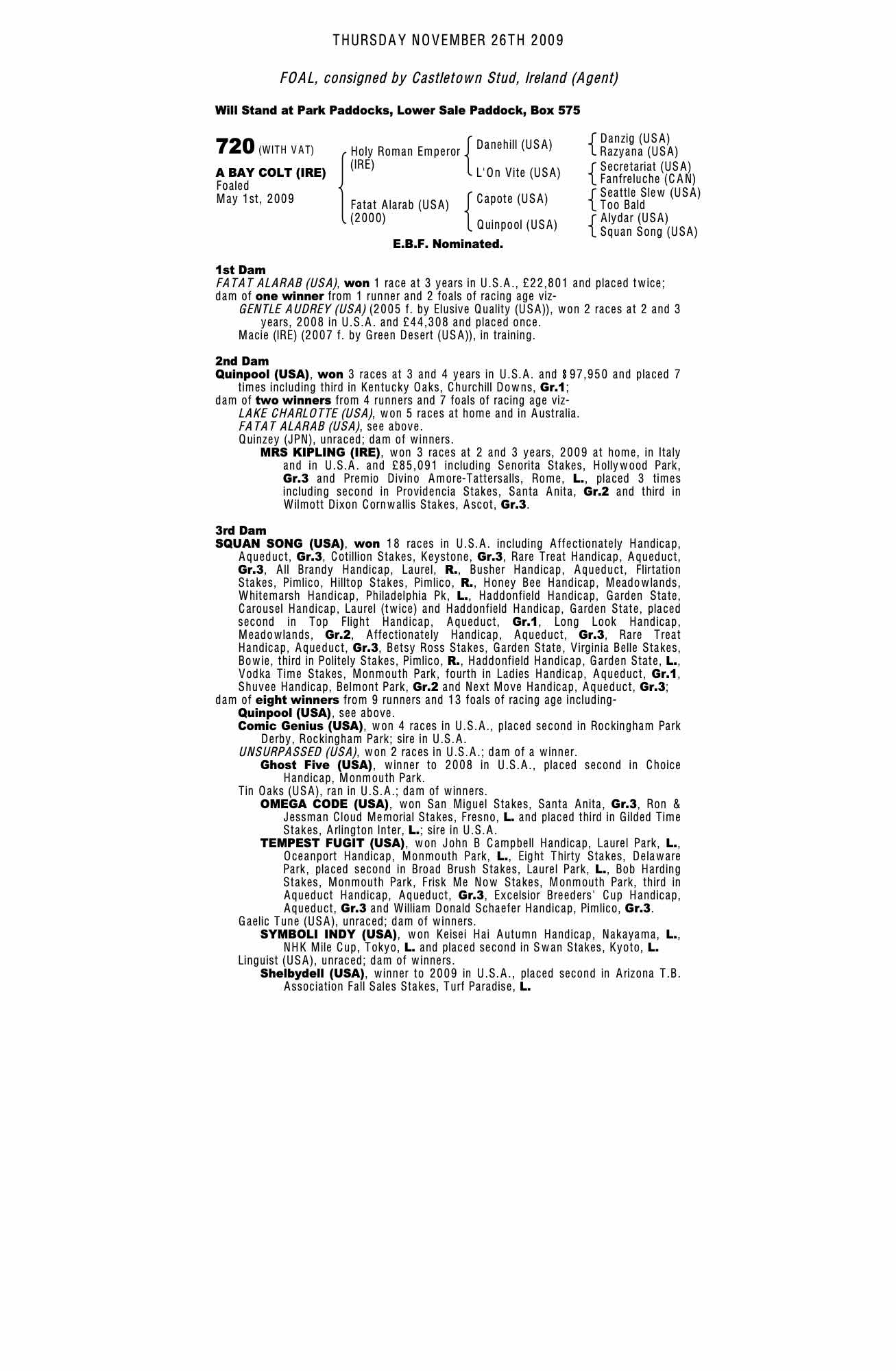 Consignor: Castletown Stud, Ireland (Agent)