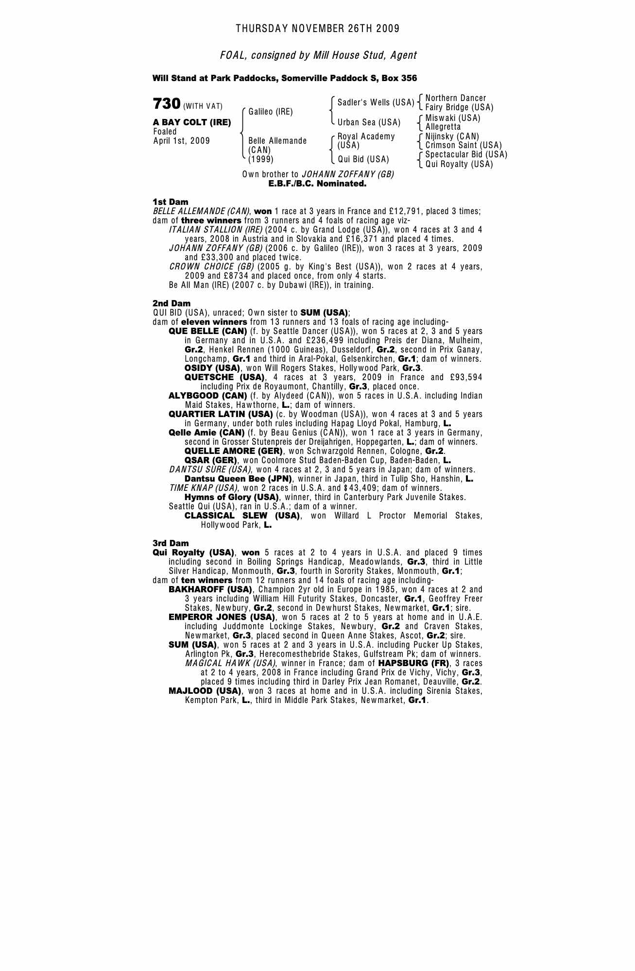 Consignor: Mill House Stud, Agent