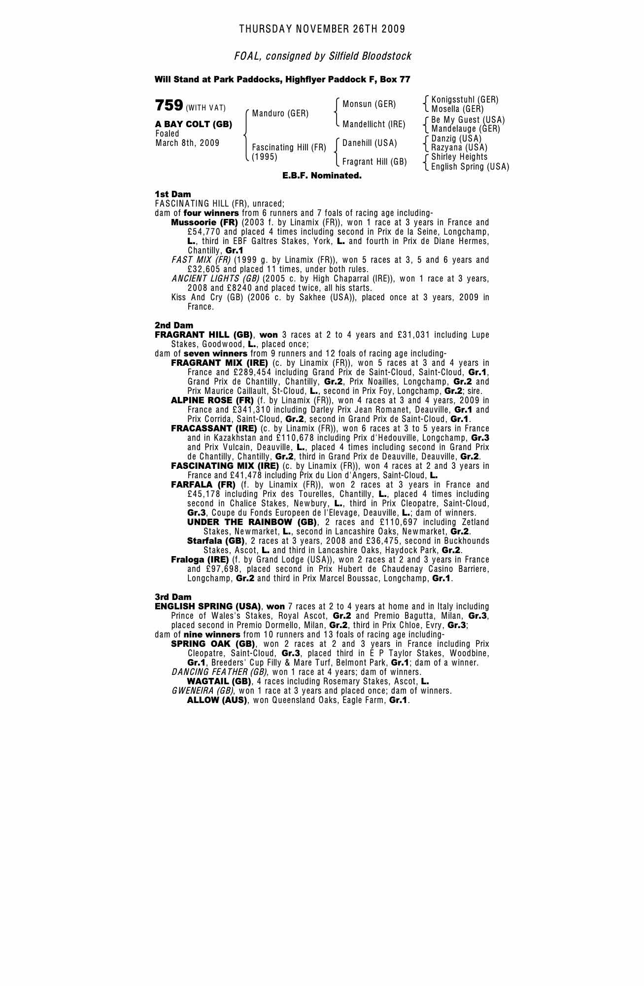 Consignor: Silfield Bloodstock