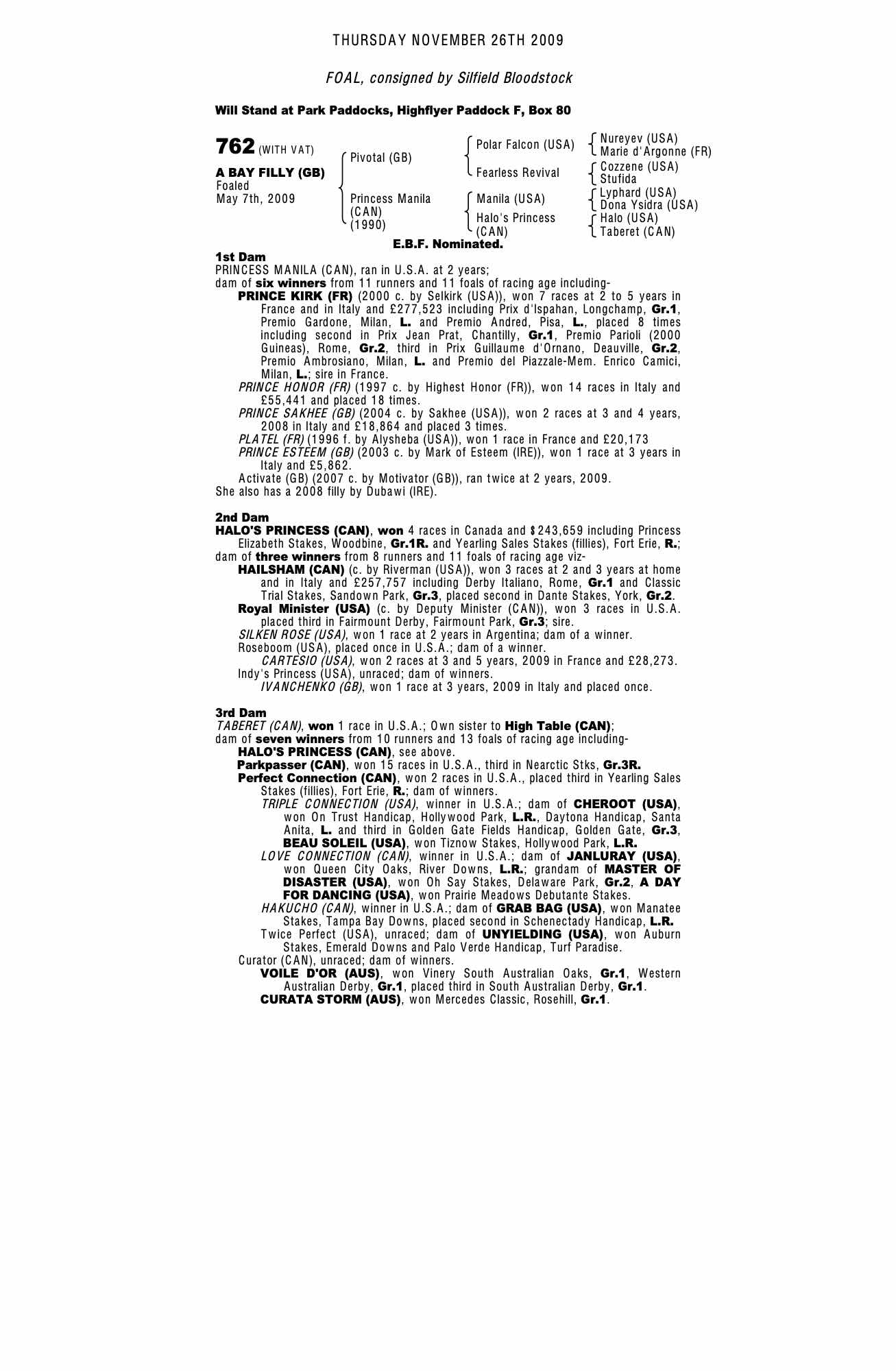 October Yearling Sale, Book 1 2009 lot 674 F. by Dubawi (IRE) 2008, John Troy, Agent=>LM Cumani 42,000 gns