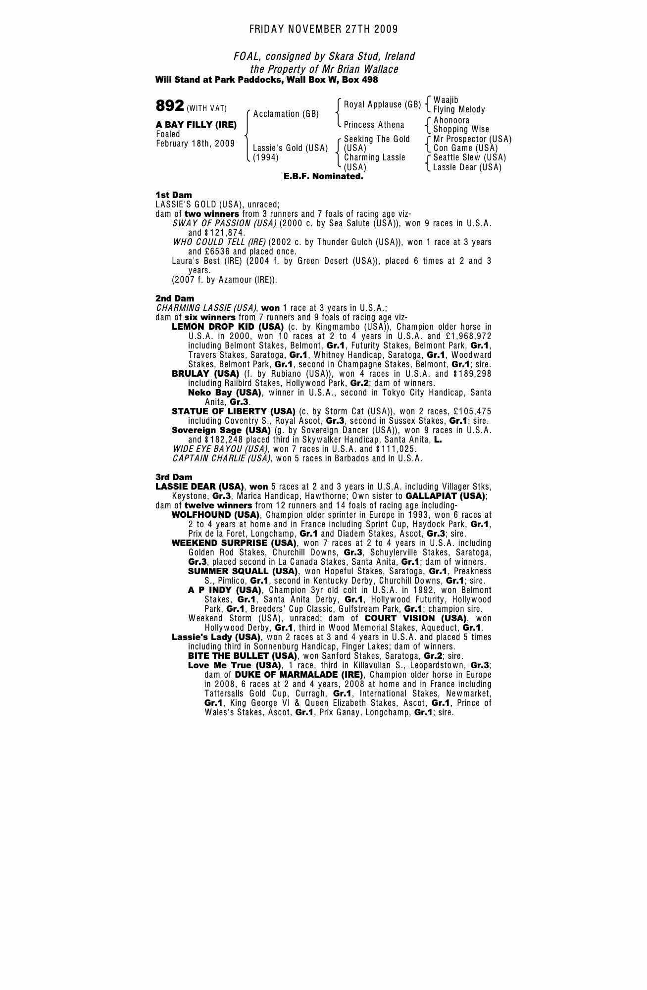September Yearling Sale 2011 lot 190 F. by Shirocco (GER) 2010, Skara Stud (Agent)=>Andrew Oliver €10,000