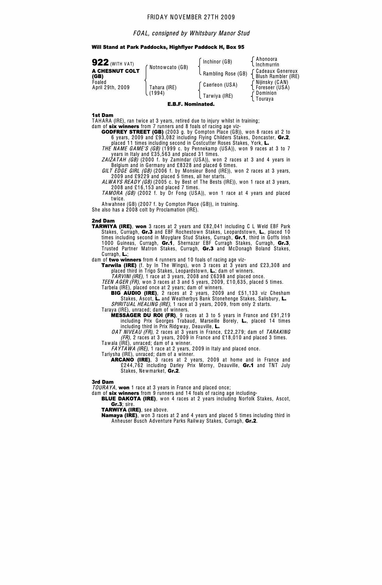 Consignor: Whitsbury Manor Stud