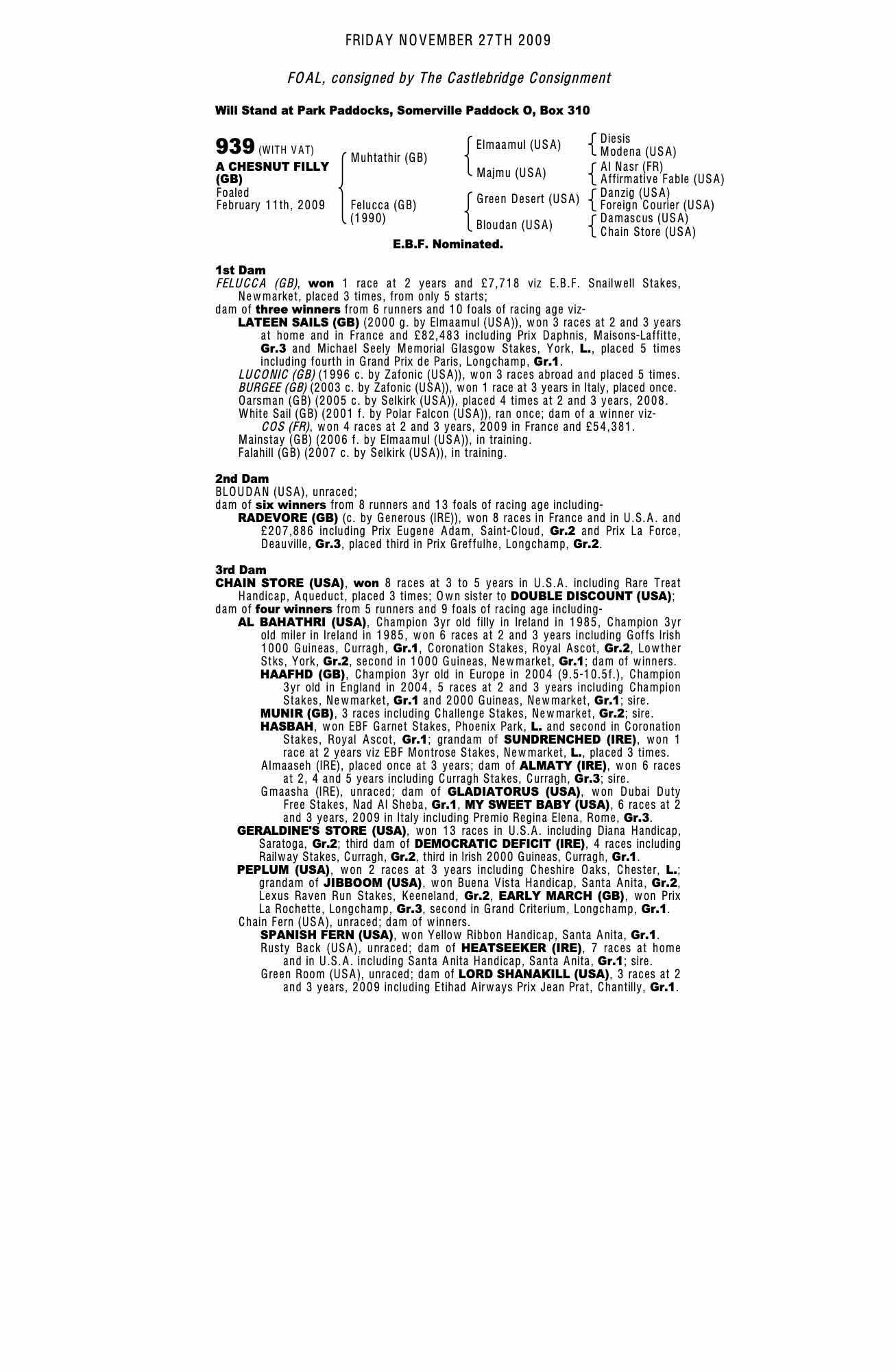December Mare Sale 2009 lot 1887 Mainstay (GB) (F. by Elmaamul (USA)), Juddmonte Farms=>Blandford Bloodstock 10,000 gns