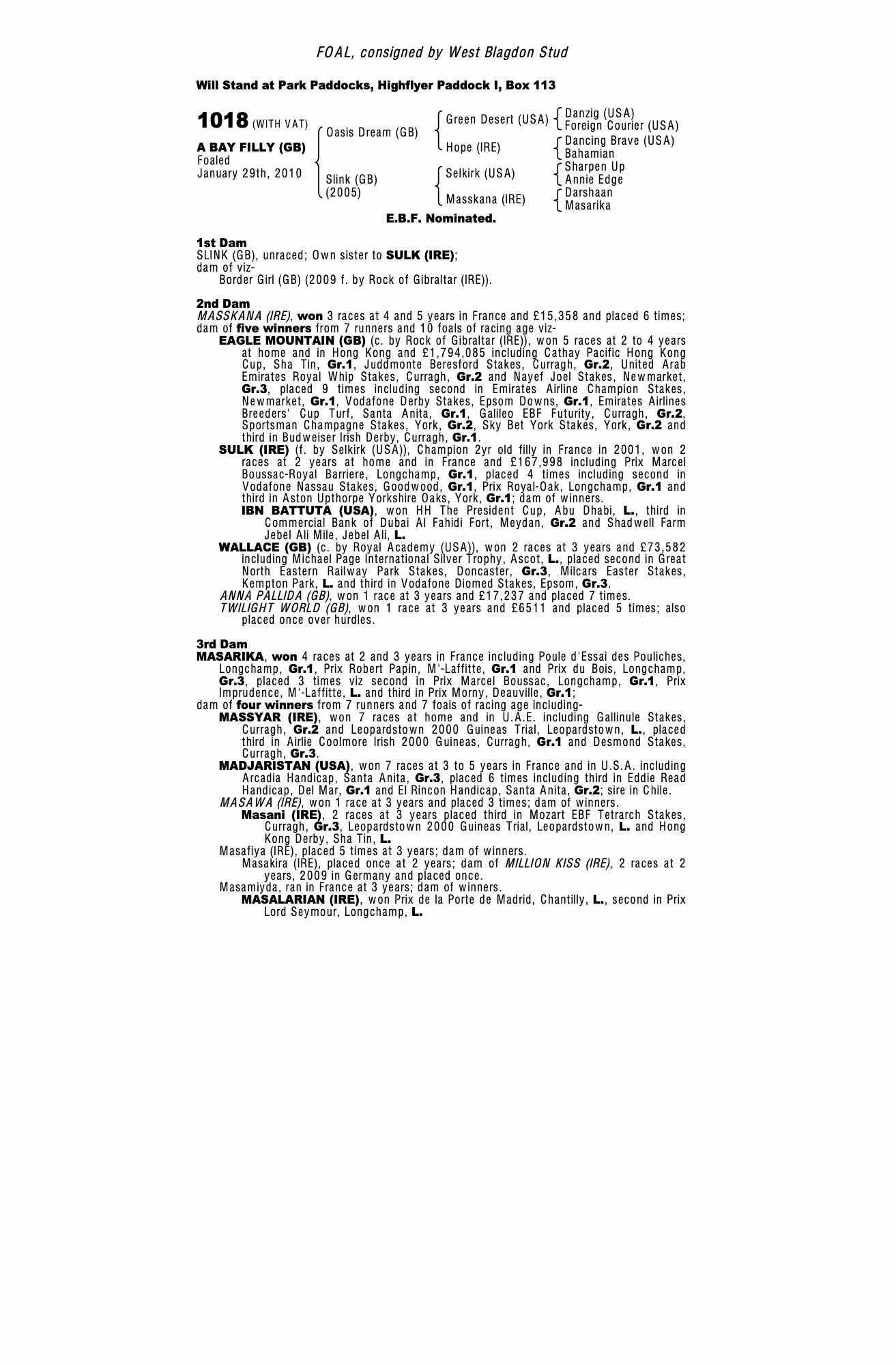Consignor: West Blagdon Stud