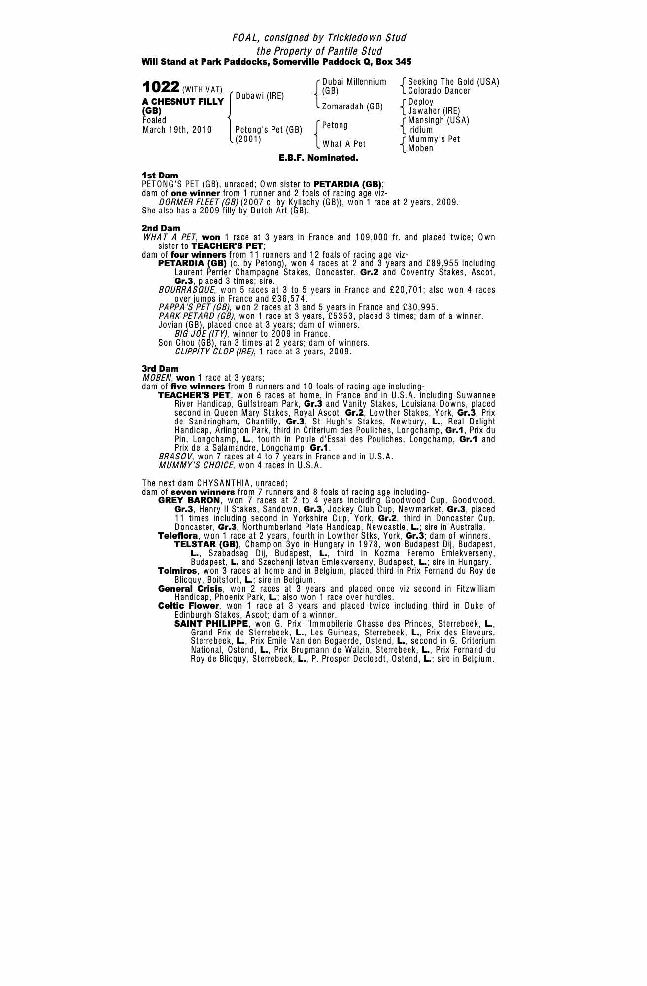 December Mare Sale 2012 lot 2408 Aubrietia (GB) (F. by Dutch Art (GB)), Alan McCabe Racing Ltd.=>Vendor 6,000 gns