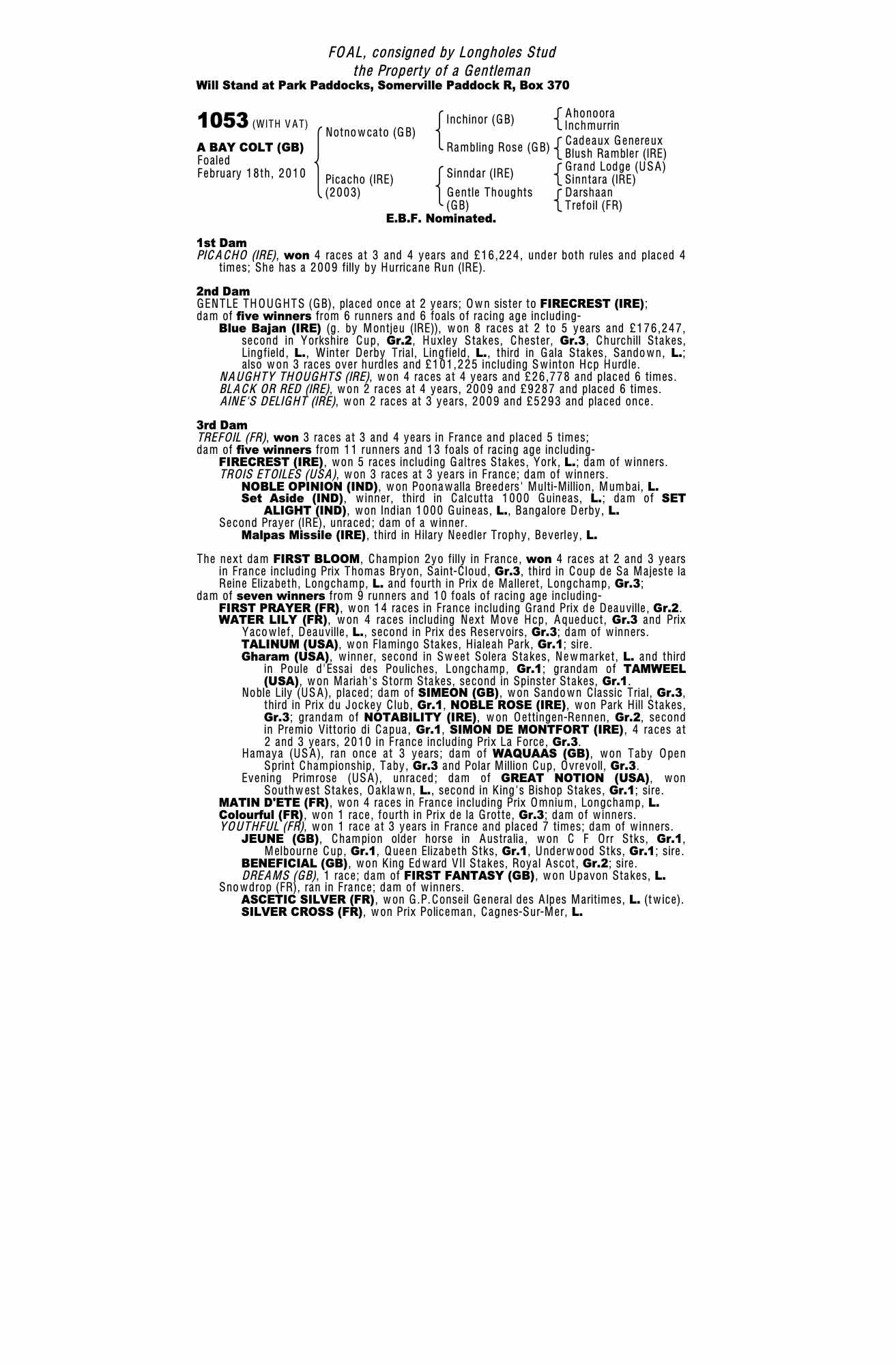 December Yearling Sale 2010 lot 287 F. by Hurricane Run (IRE) 2009, Elms Stud=>Lot Not Sold 4,500 gns