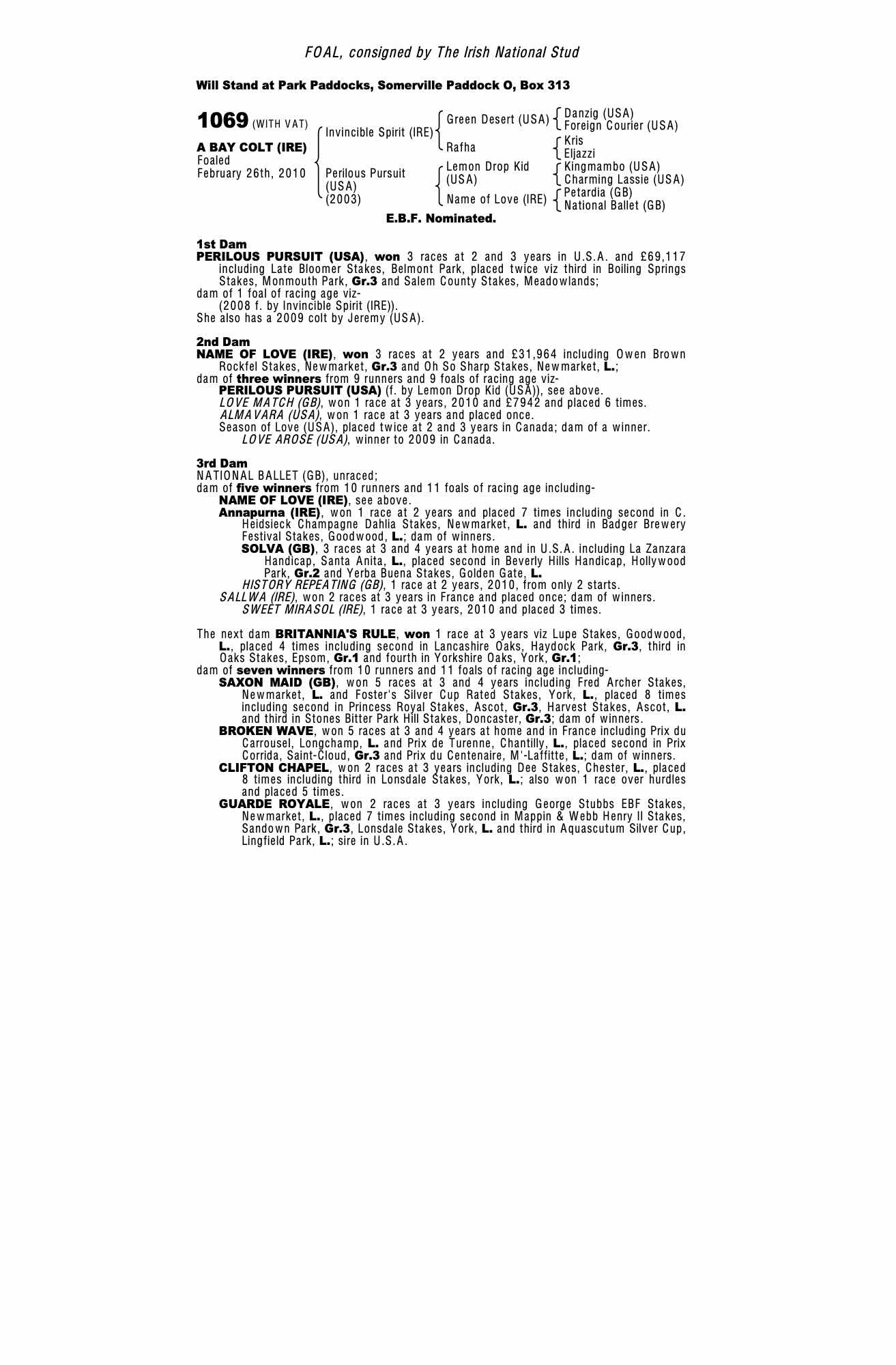 Consignor: The Irish National Stud