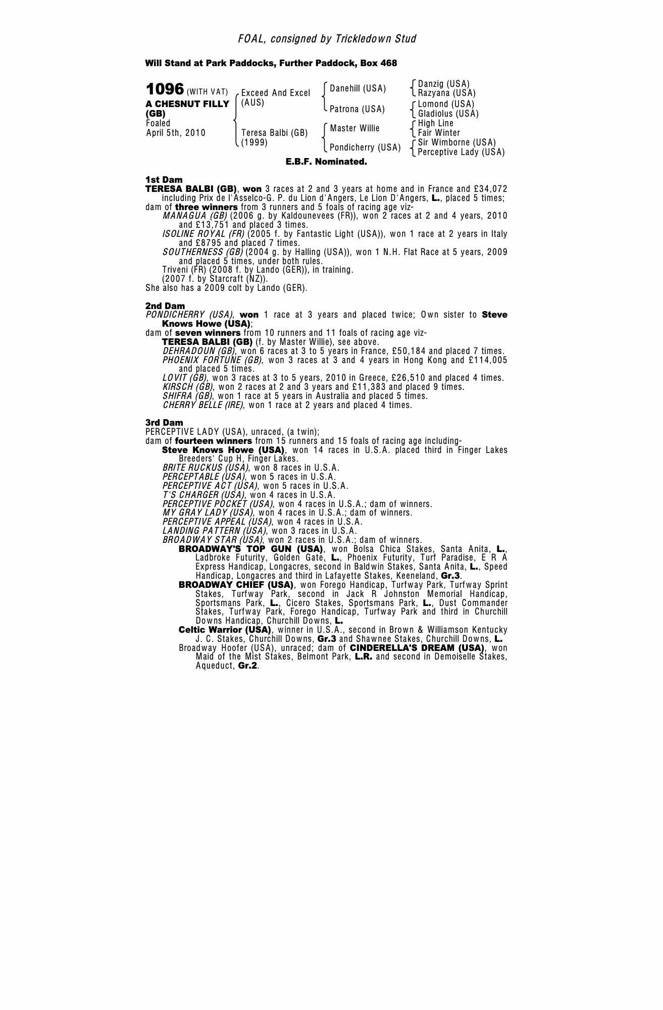 Consignor: Trickledown Stud