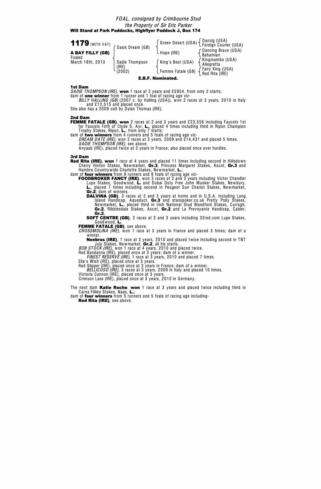 October Yearling Sale, Book 2 2010 lot 1543 C. by Dylan Thomas (IRE) 2009, Crimbourne Stud=>Blandford Bloodstock 35,000 gns