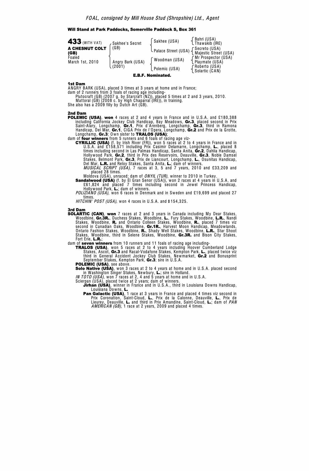 Consignor: Mill House Stud (Shropshire) Ltd., Agent