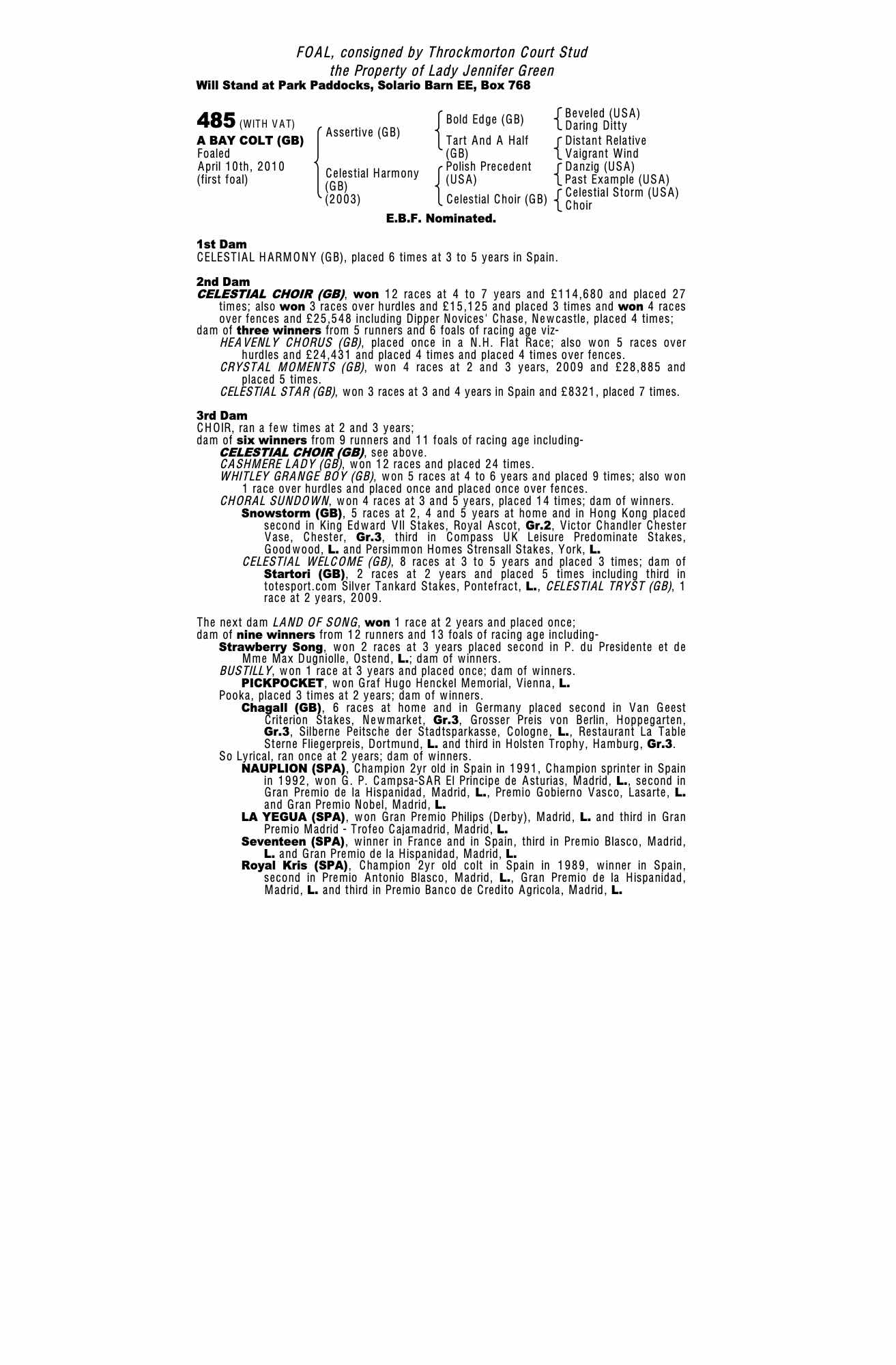 Consignor: Throckmorton Court Stud