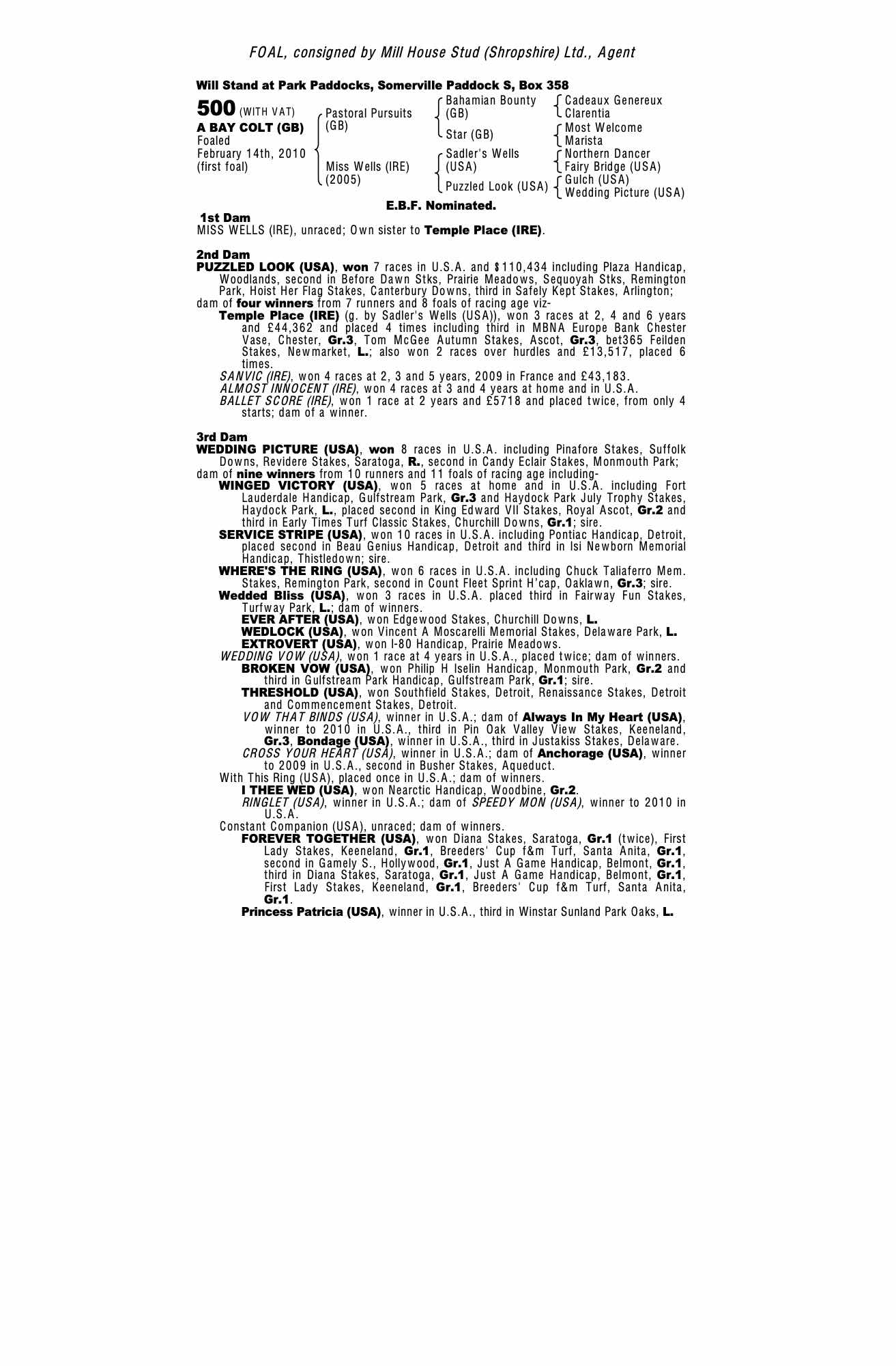Consignor: Mill House Stud (Shropshire) Ltd., Agent