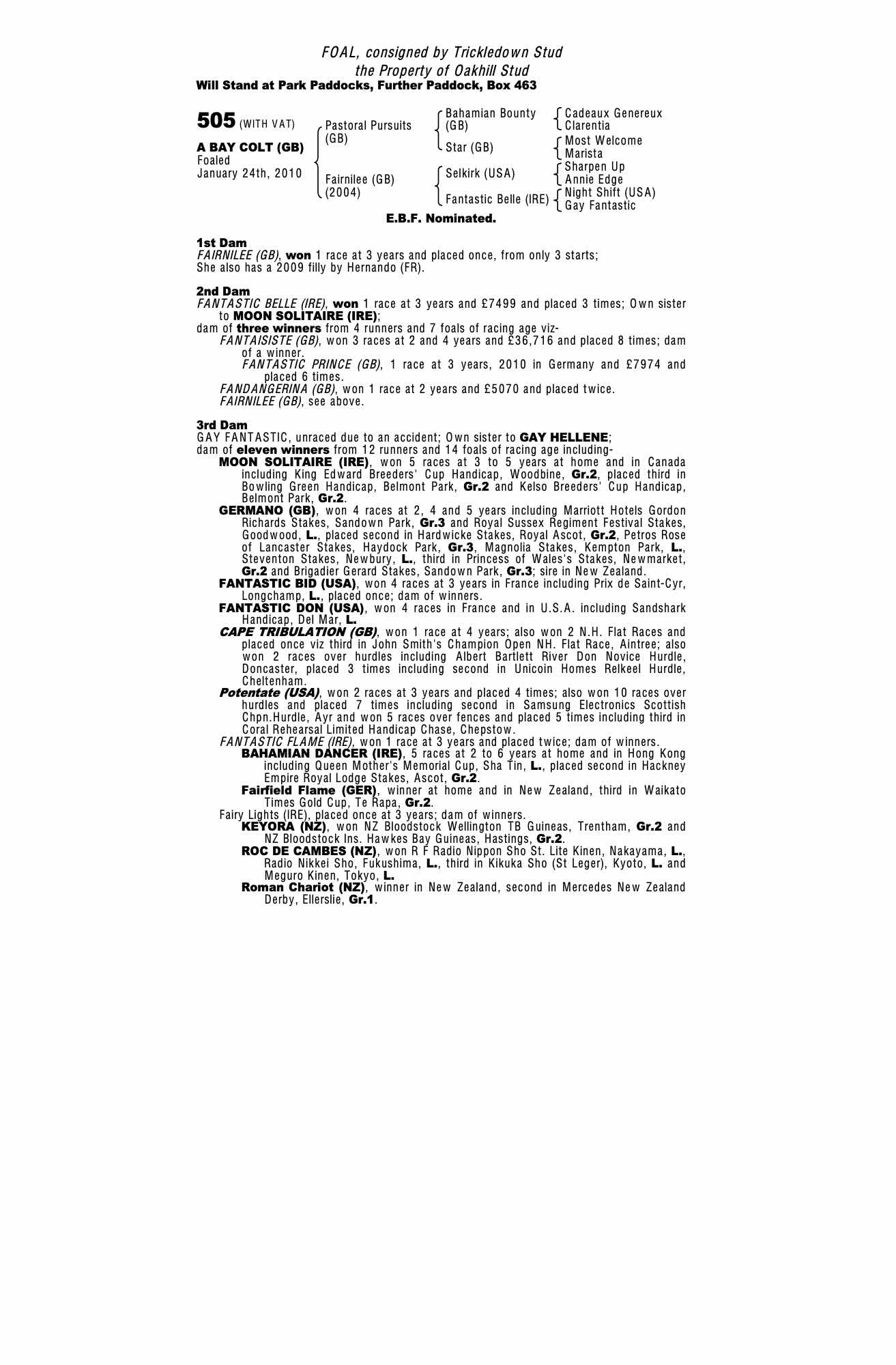 Consignor: Trickledown Stud