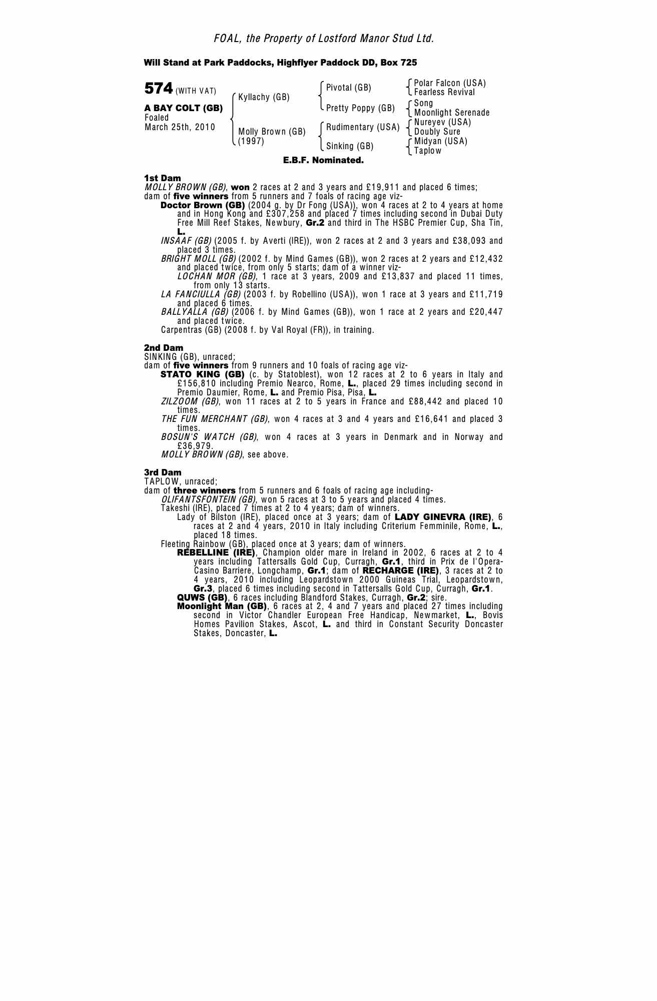 July Sale 2011 lot 40 La Fanciulla (GB) (M. by Robellino (USA)), Trickledown Stud=>Lot Not Sold