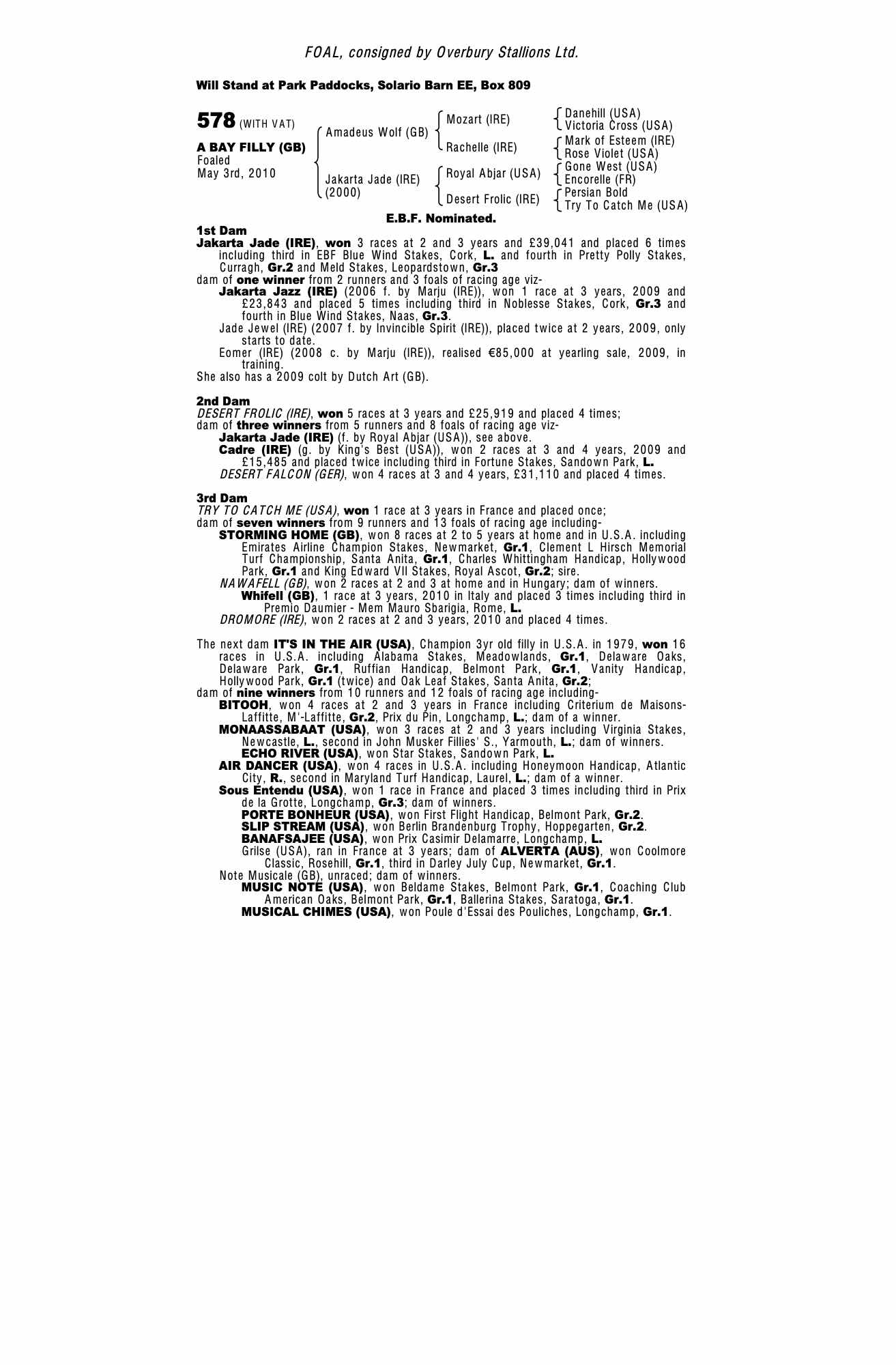 July Sale 2010 lot 143 Jakarta Jazz (IRE) (M. by Marju (IRE)), Castlemartin Stud, Ireland=>Gazeley Stud 20,000 gns