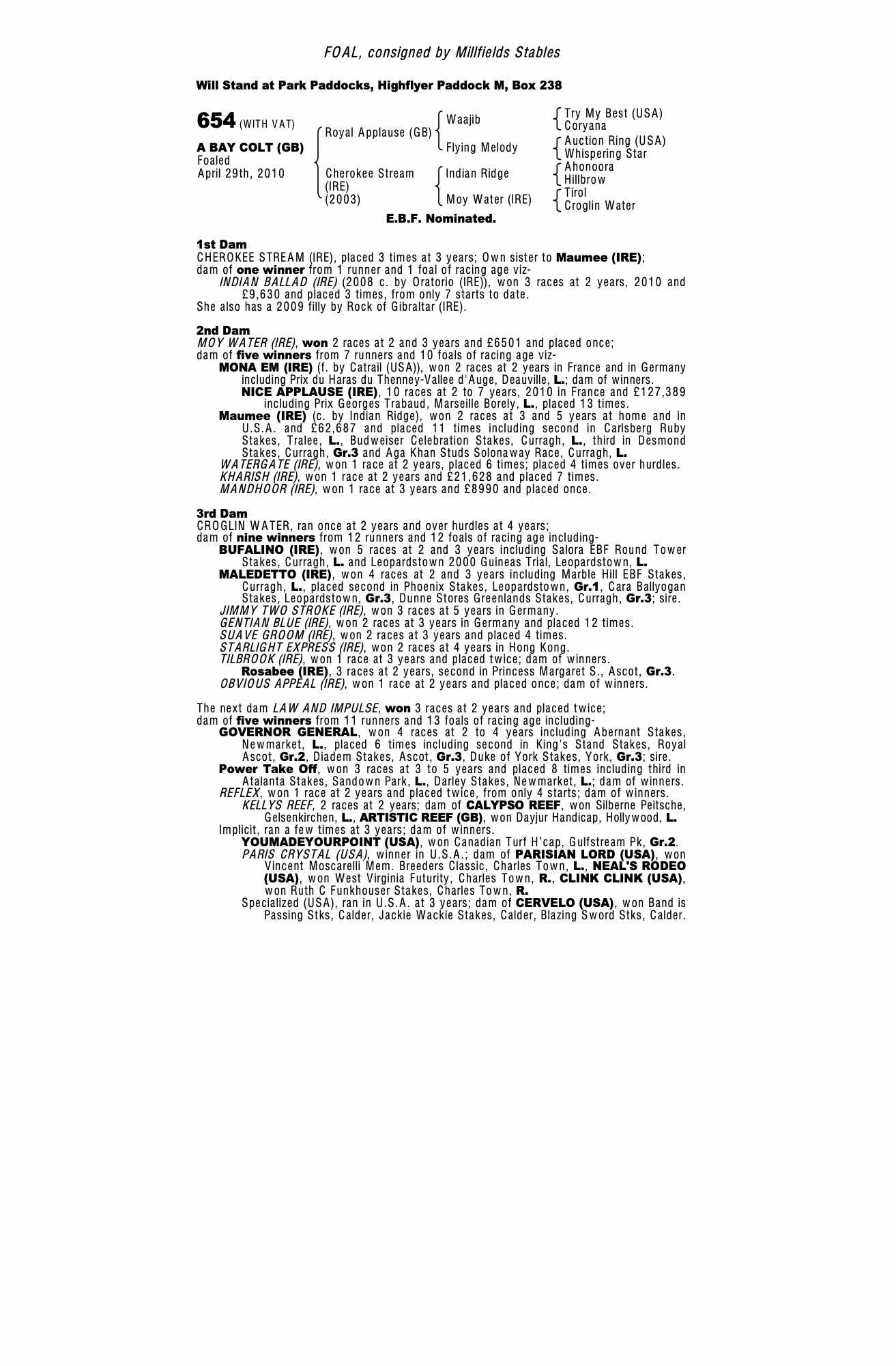 Consignor: Millfields Stables