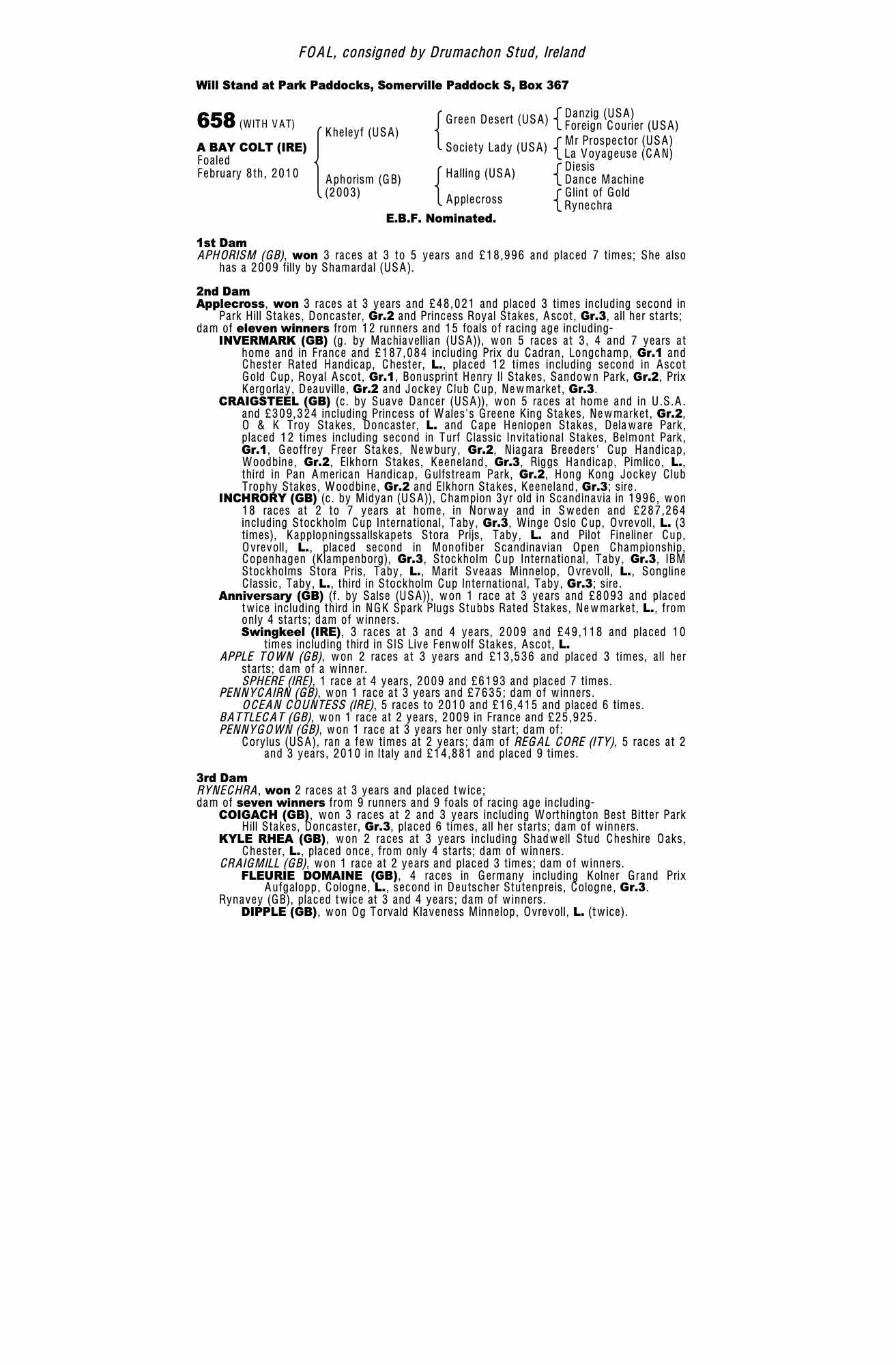September Yearling Sale 2010 lot 49 F. by Shamardal (USA) 2009, Drumachon Stud=>Winning Bloodstock €20,000