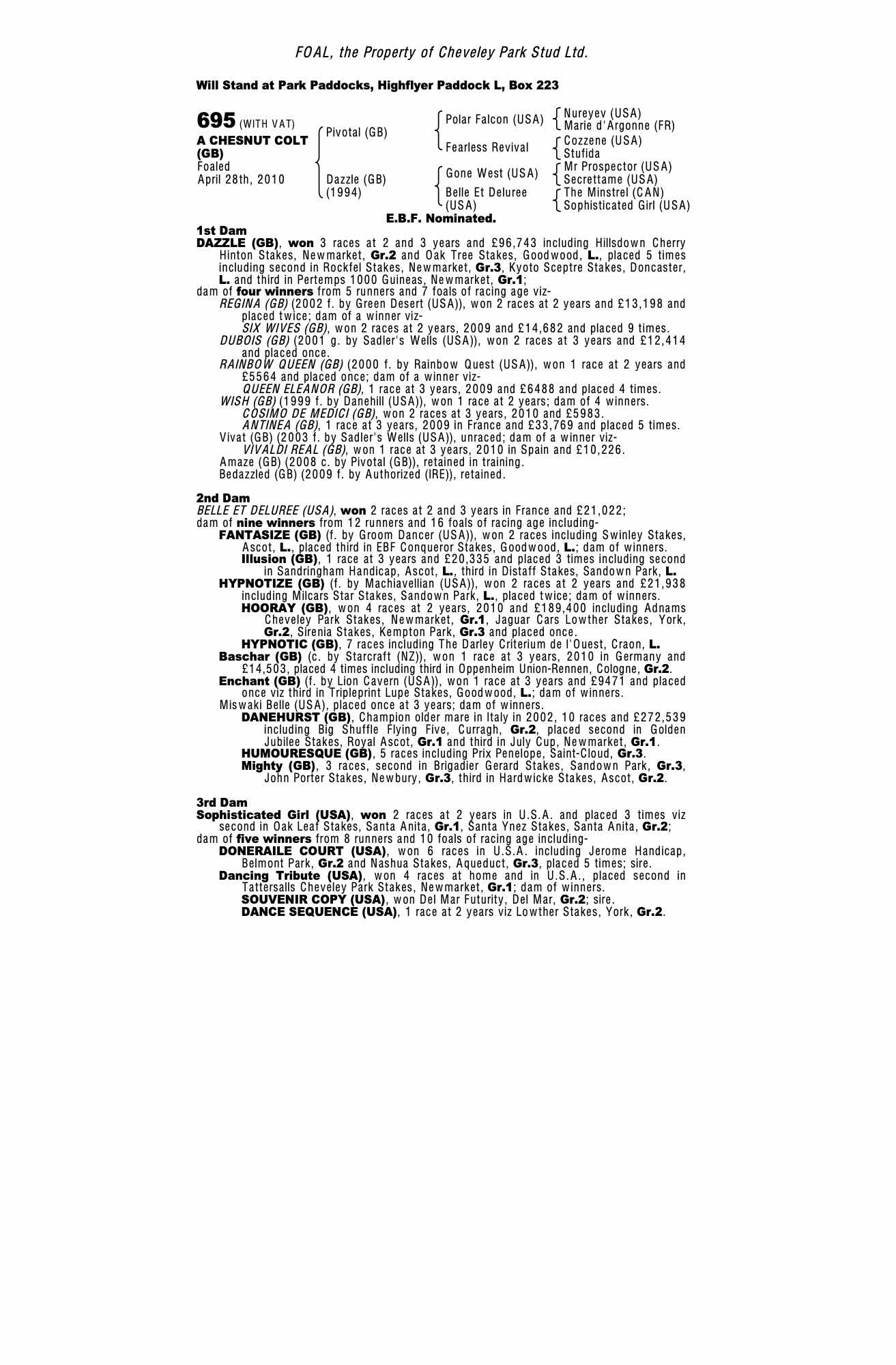 December Foal Sale 2011 lot 741 C. by Selkirk (USA) 2011, Cheveley Park Stud Ltd.=>Five Star Bloodstock 7,500 gns