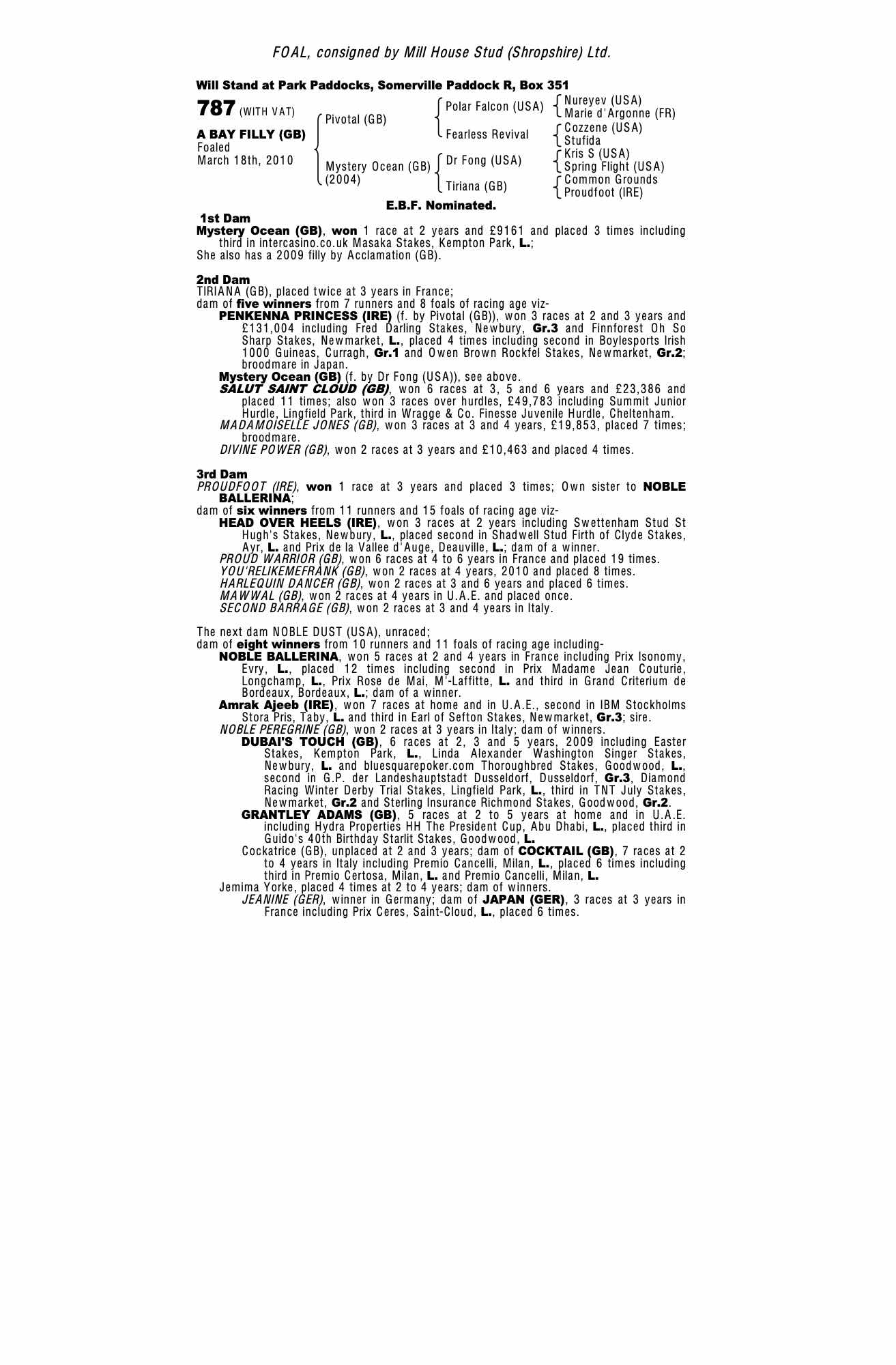 Consignor: Mill House Stud (Shropshire) Ltd.
