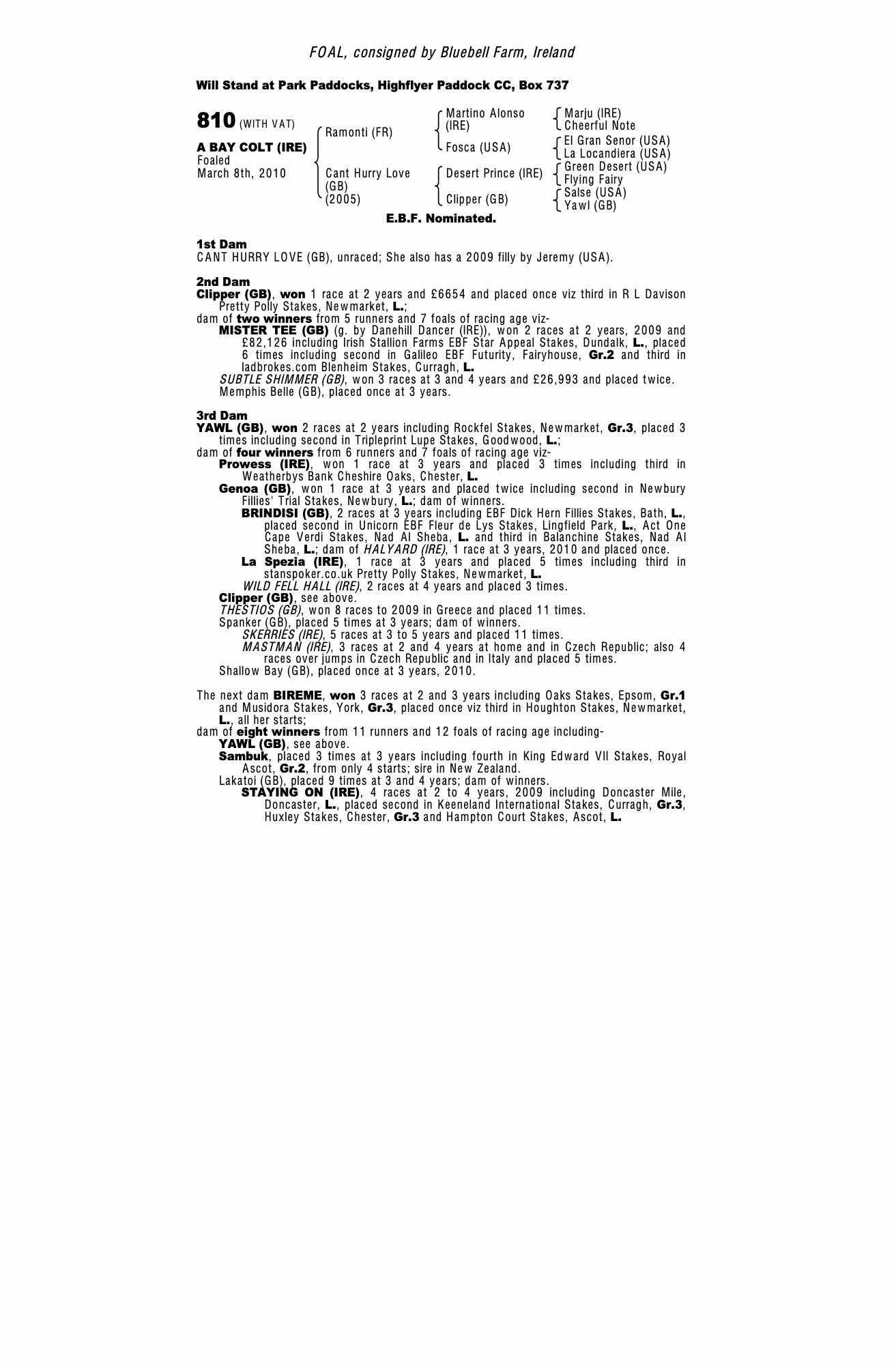 December Foal Sale 2012 lot 624 C. by Jeremy (USA) 2012, Bluebell Farm, Ireland=>Vendor 4,500 gns