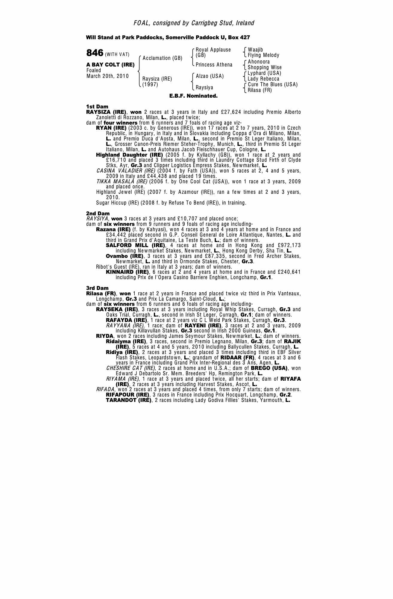Consignor: Carrigbeg Stud, Ireland