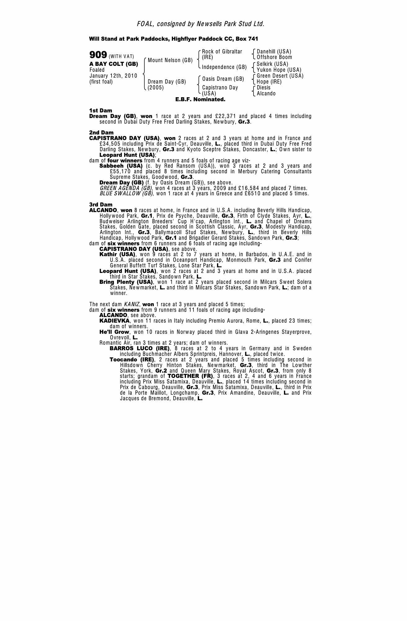 October Yearling Sale, Book 1 2011 lot 56, Tally-Ho Stud, Ireland=>Gill Richardson Bloodstock 40,000 gns