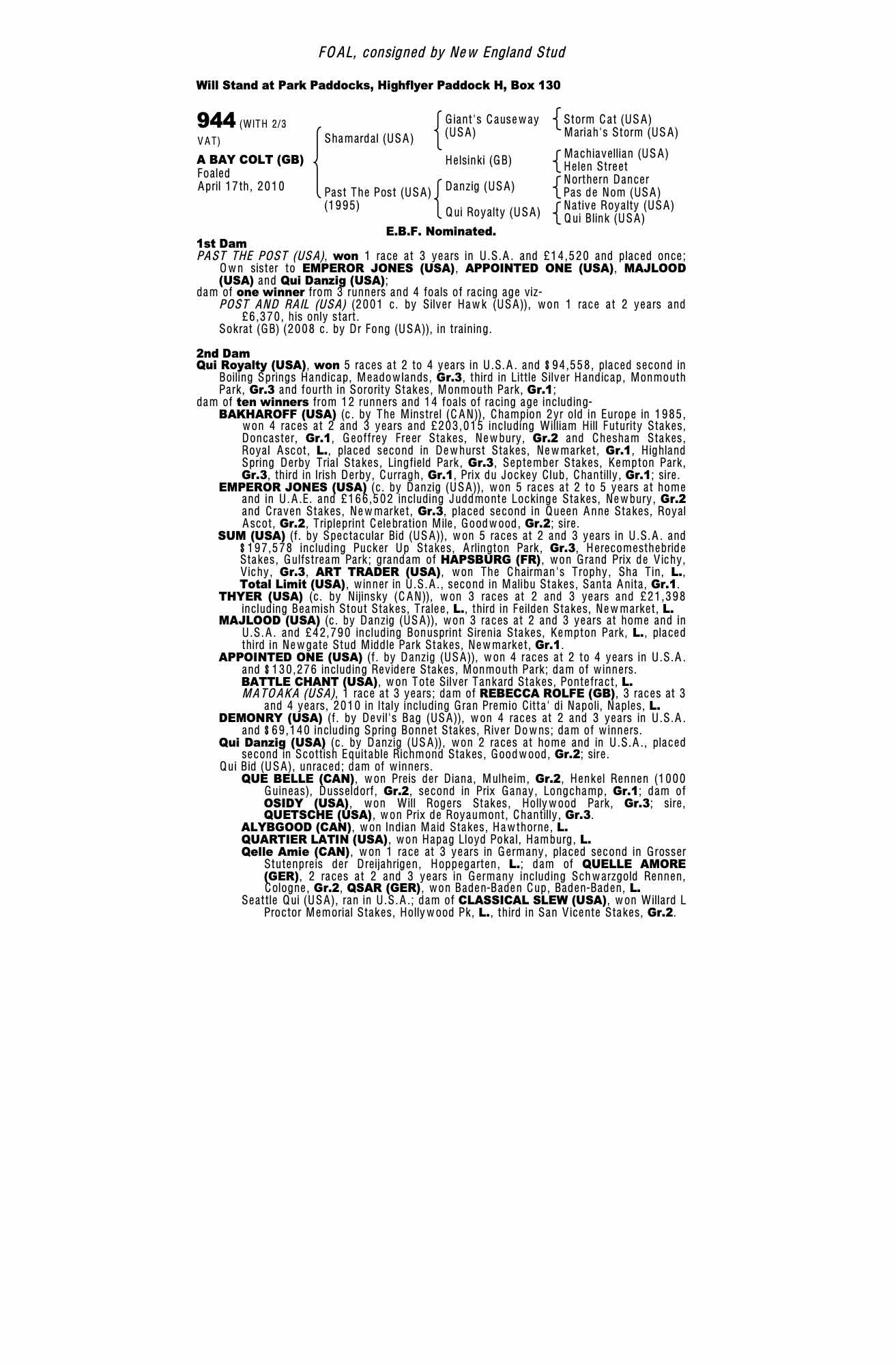 October Yearling Sale, Book 2 2009 lot 1448 C. by Dr Fong (USA) 2008, New England Stud=>Litex Commerce AD 13,500 gns