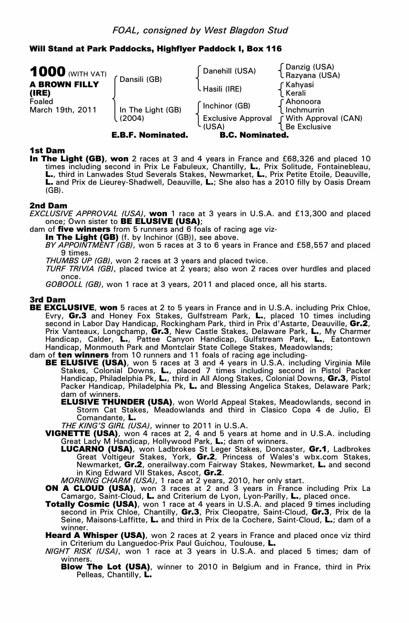 Consignor: West Blagdon Stud