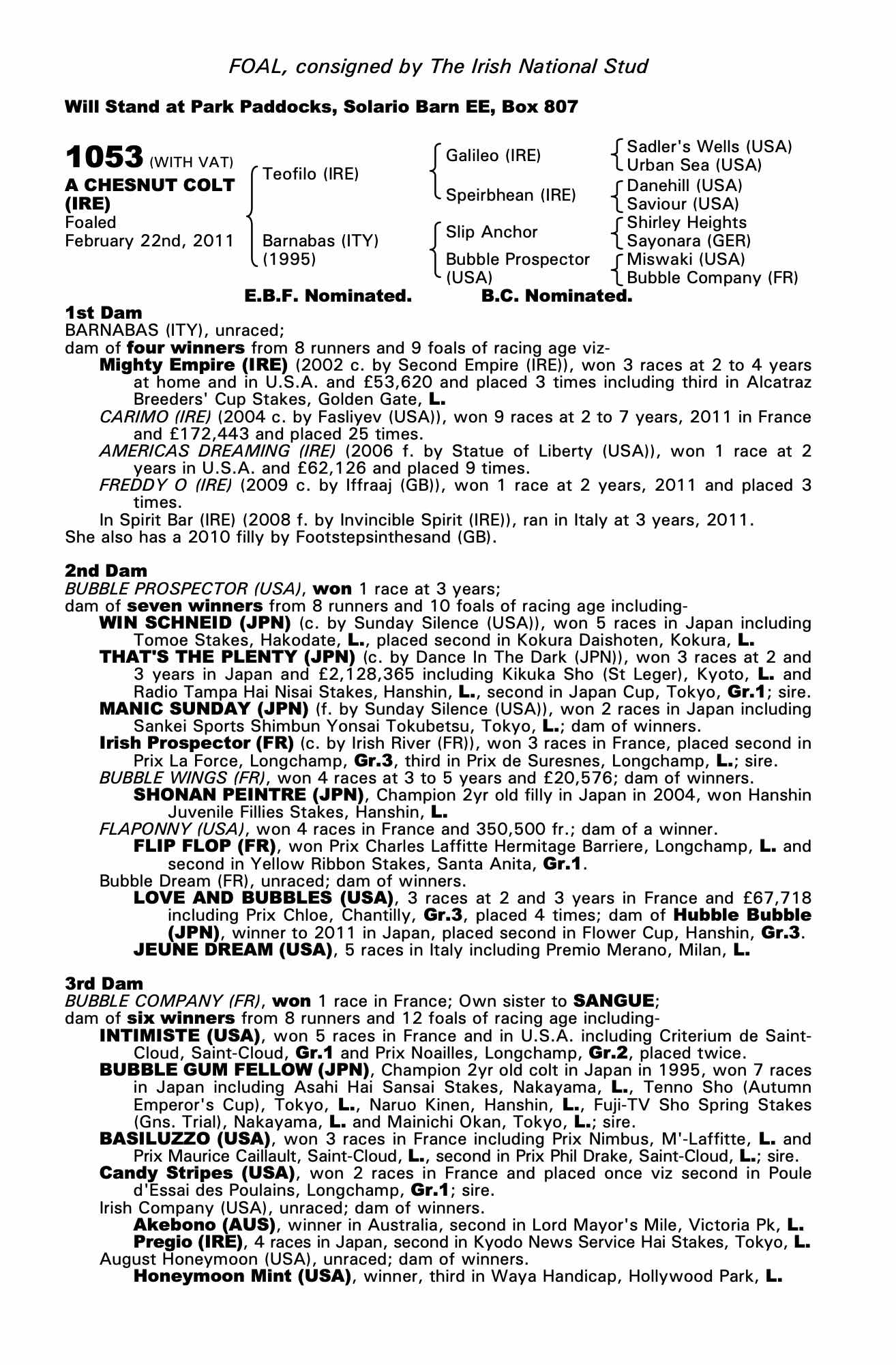December Foal Sale 2010 lot 1071 F. by Footstepsinthesand (GB) 2010, The Irish National Stud=>Vendor 8,000 gns