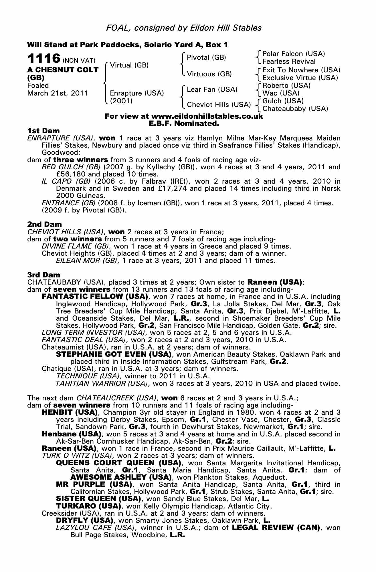 December Mare Sale 2012 lot 2411 Entrance (GB) (F. by Iceman (GB)), Harraton Stud (Mrs J. Feilden)=>Lot Not Sold