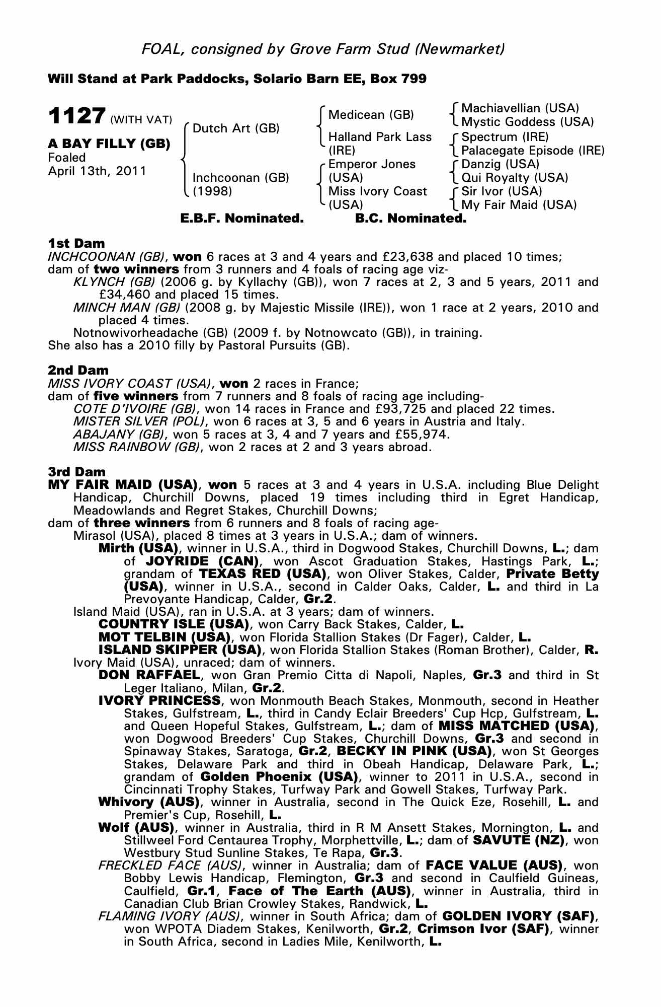 December Foal Sale 2010 lot 1139 F. by Pastoral Pursuits (GB) 2010, Grove Farm Stud (Newmarket)=>J Walsh Bloodstock 14,000 gns