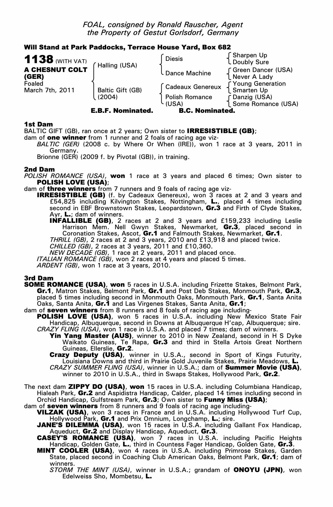 December Foal Sale 2013 lot 1214 Baltic Art (GER) (C. by Excellent Art (GB)), Plumton Hall Stud=>Vendor 9,000 gns