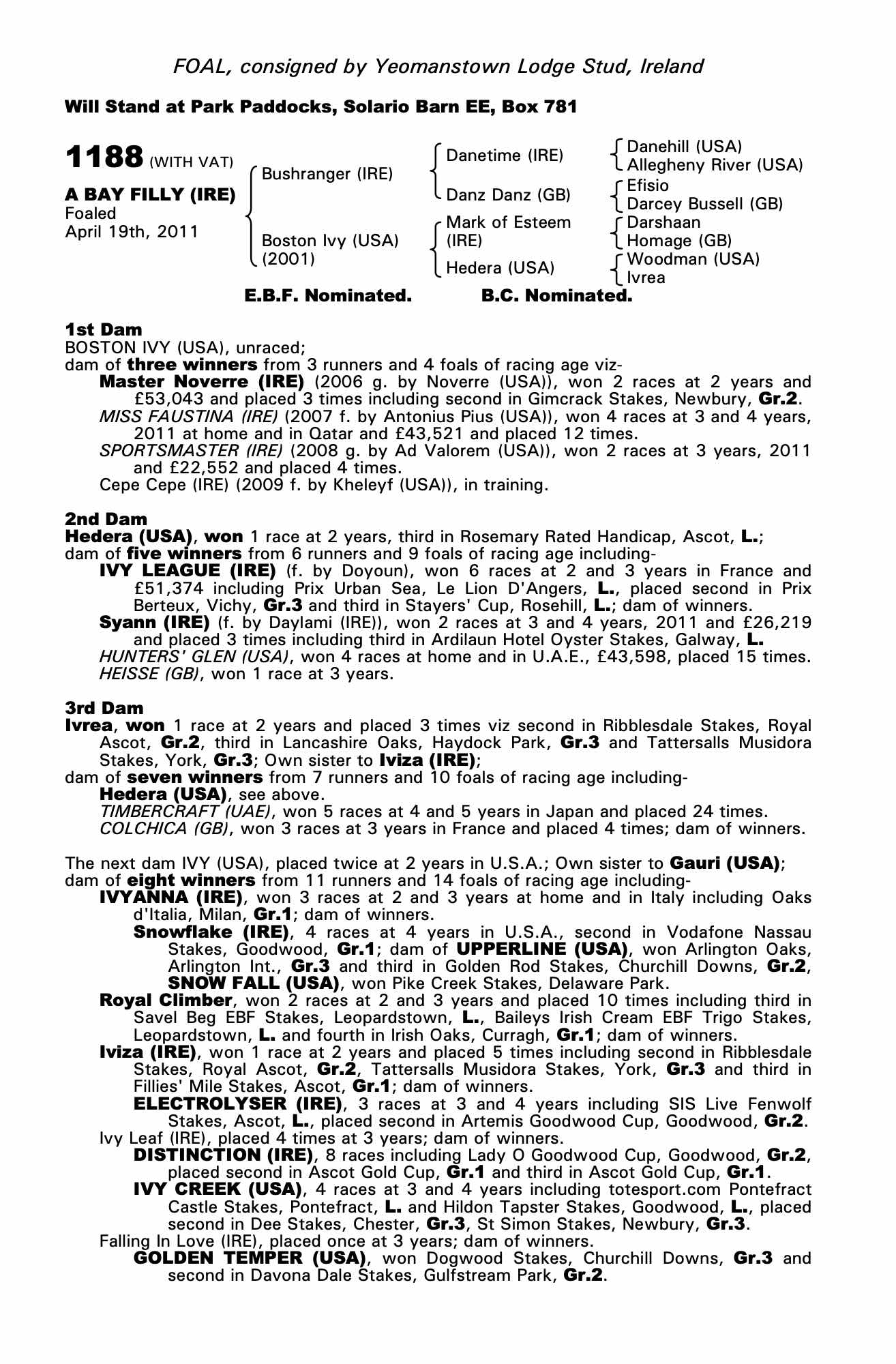 Consignor: Yeomanstown Lodge Stud, Ireland