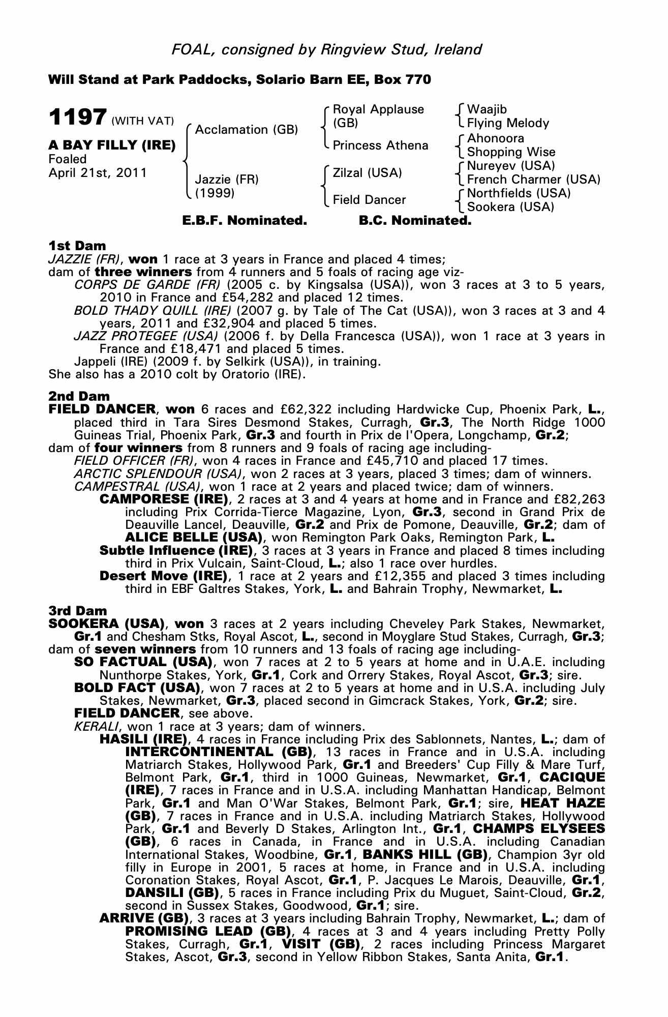 October Yearling Sale, Book 1 2010 lot 323 F. by Selkirk (USA) 2009, Grove Stud, Ireland=>Vendor 40,000 gns