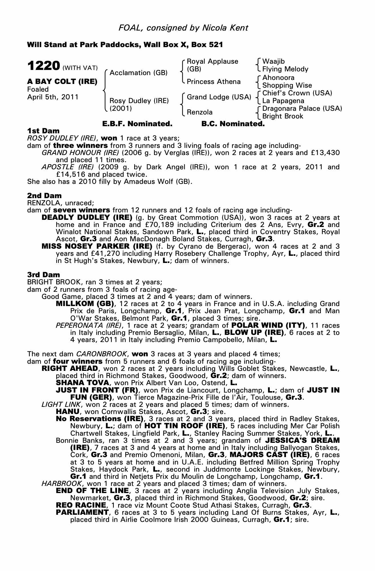 September Yearling Sale 2011 lot 323 F. by Amadeus Wolf (GB) 2010, Nicola Kent=>Final Furlong Bloodstock Limited €16,000