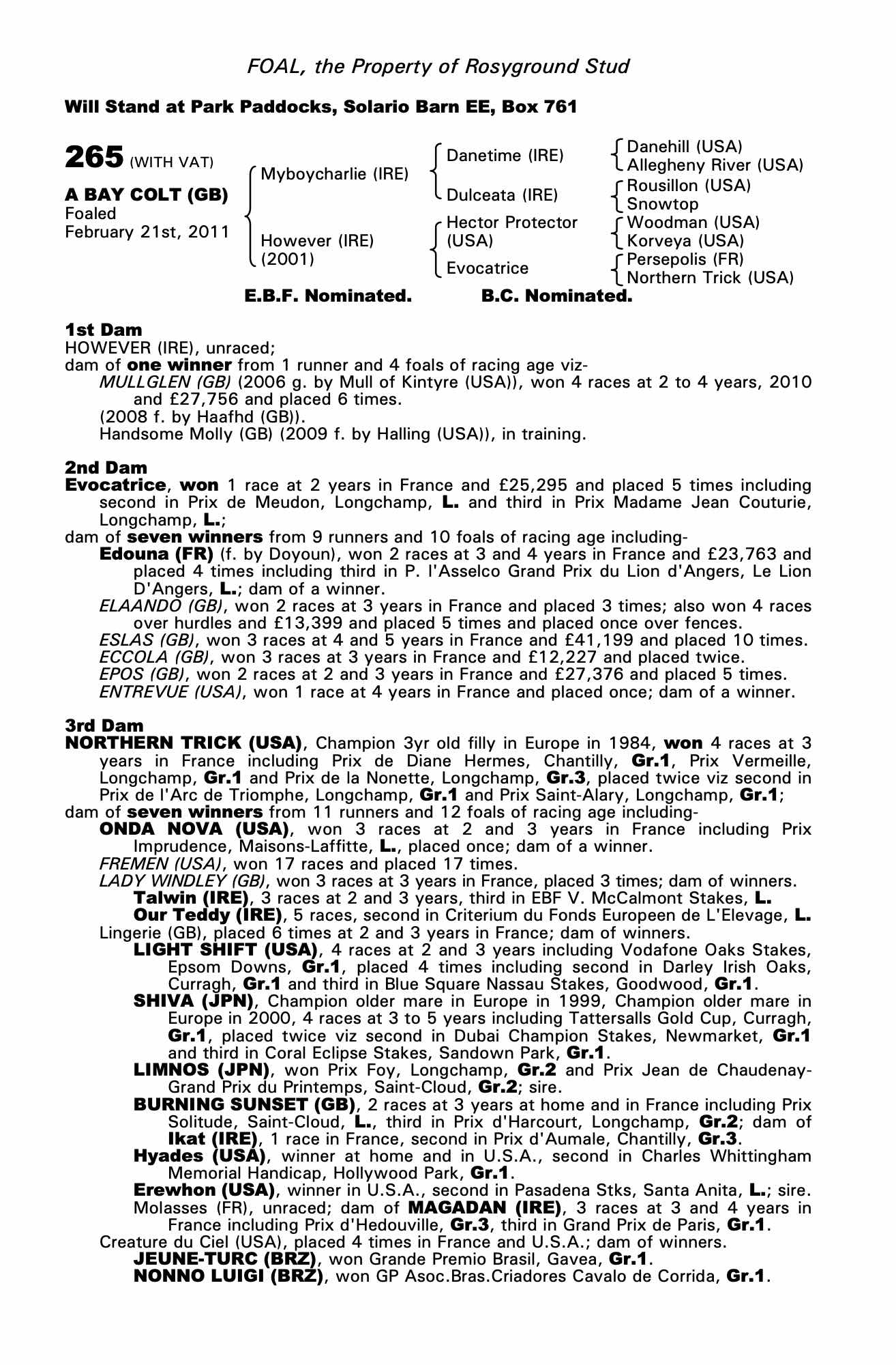 Consignor: Rosyground Stud